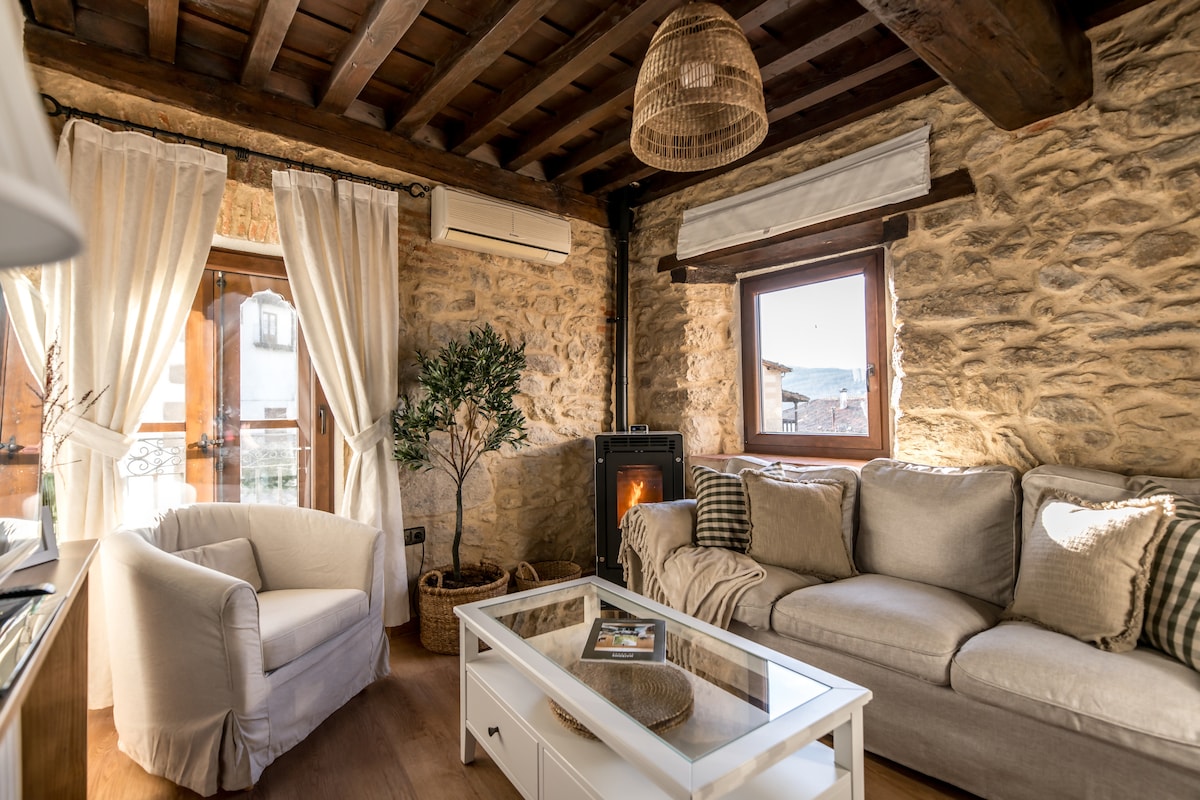 El alojamiento rural de cuatro pisos es una encantadora estructura que combina comodidad con el encanto rústico. Cada piso ofrece una experiencia única para los huéspedes, con una variedad de comodidades y vistas impresionantes. Totalmente reformado y equipado con todo lo necesario para una excelente estancia que invitan a la relajación y al disfrute de la naturaleza. Este apartamento además de la cocina, los huéspedes encontrarán un espacioso comedor bellamente decorado. Aquí, podrán disfrutar de sus comidas en un ambiente acogedor y elegante, con capacidad para toda la familia o grupo de amigos. Este encantador alojamiento rural ofrece tres acogedoras habitaciones cada una diseñada para proporcionar confort y descanso a los huéspedes, cada habitación está decorada con buen gusto, combinando elementos rústicos con toques modernos para crear un ambiente cálido y acogedor, el baño está totalmente equipado. Además, para garantizar la comodidad de los huéspedes durante los meses más fríos, está equipada con una estufa de pellets, que proporciona un calor acogedor y agradable en toda la estancia. Muy luminoso todo exterior y con balcón con vistas al pueblo y a la montaña increíbles. El salón está amueblado con cómodos sofás y sillones, perfectos para descansar después de un día de exploración en la naturaleza.