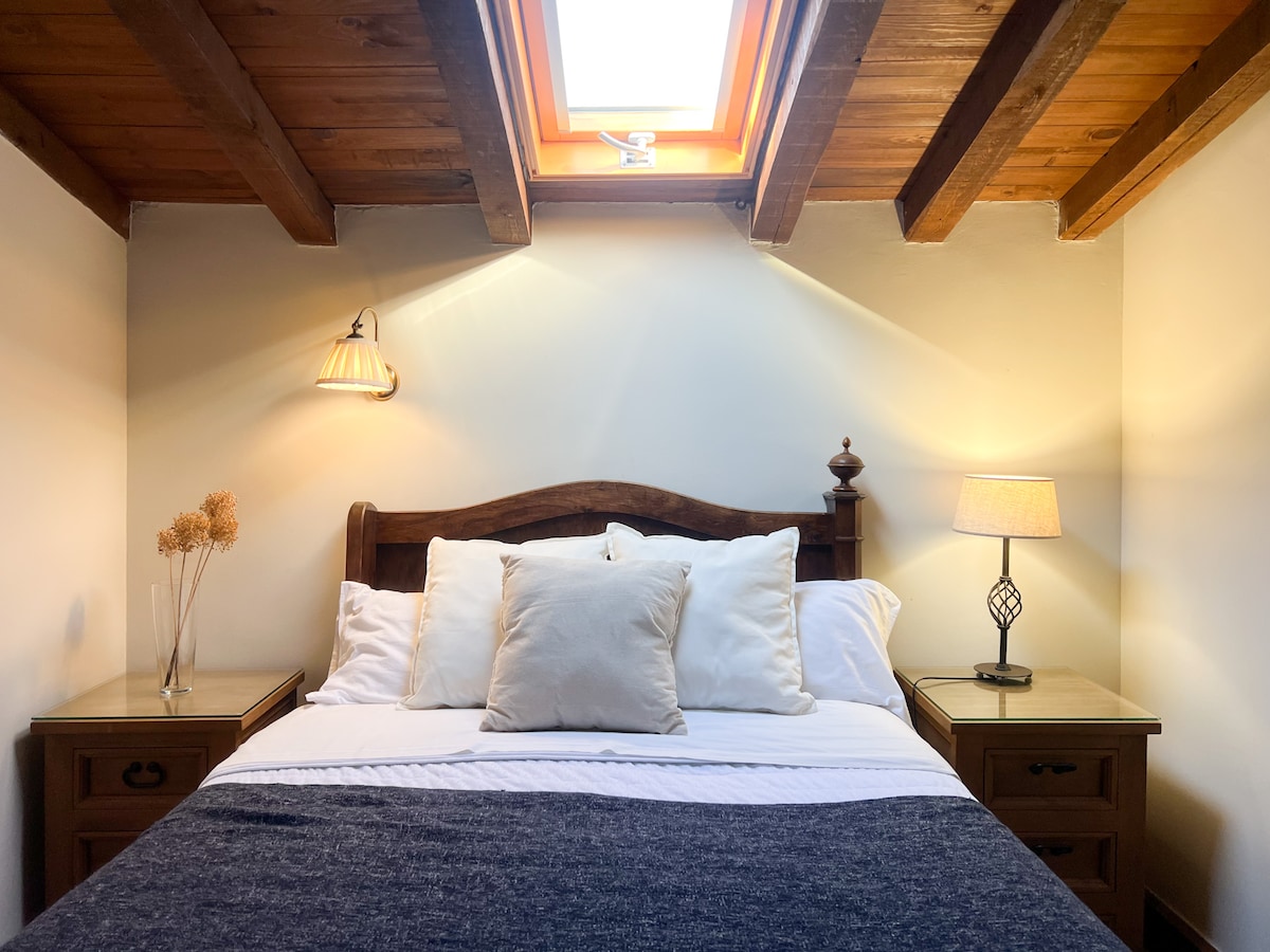 Casa independiente ideal para parejas y pequeñas familias. Aparcamiento y jardín privado, no compartido, porche y barbacoa No es una habitación, es un precioso cottage. Salón de concepto abierto. Zona de estar orientada a la chimenea de leña y smart TV, comedor con cocina integrada, baño completo, doble lavabo y precioso dormitorio con cama XXL. Próxima a la salida 375 de la A66. Descanso ideal entre el norte y sur Consulta si vienes con mascota. La piscina a 100 metros y es comunitaria