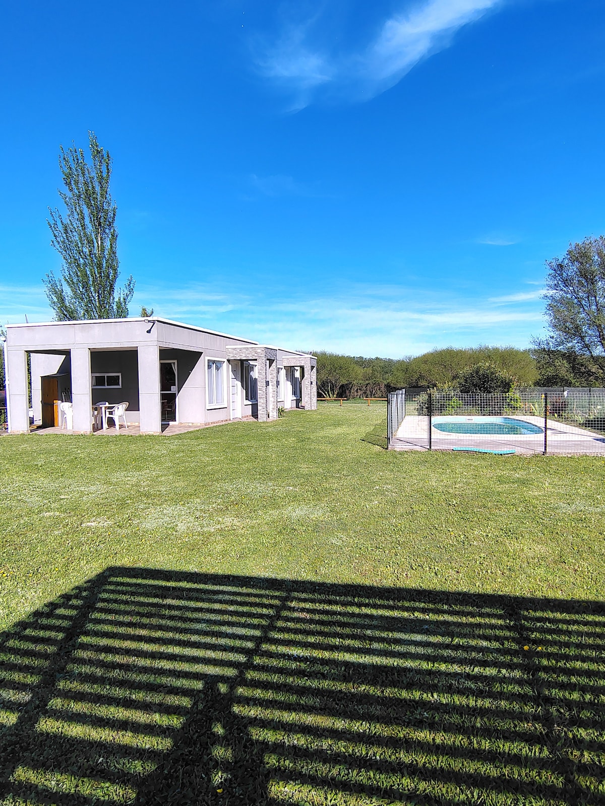 Relajate en este alojamiento único y tranquilo. Casa Cardales es una propiedad individual de 135 mt2., Con mini piscina climatizada a 35° todo el año de 10 a 22 hs. atendida por sus propios dueños que te harán sentir como en tu propia casa. Cuenta con 2 dormitorios, 1 baño compartimentado con columna de ducha y 1 toilete, 2 dormitorios, cocina completa con isla y living comedor con vista al parque, cochera cubierta, quincho parrilla, living exterior con fogón y parque de 1000 mt2.