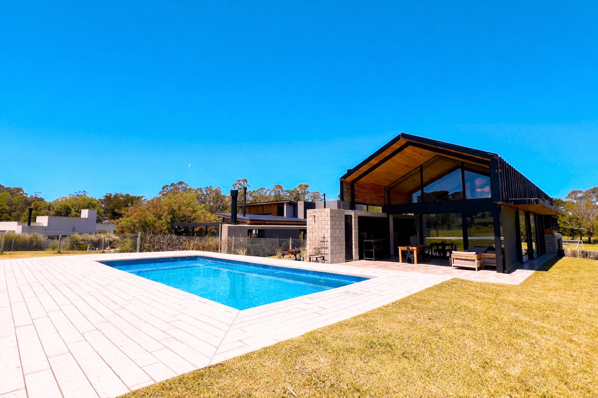 Veni a disfrutar con quien elijas en este tranquilo alojamiento rodeado de verdes, Emplazada en una calle sin salida lo que hace casi nula la circulación vehicular, hace de nuestra casa un lugar inmejorable para relajar . Los 1200 mts de terreno y la piscina climatizada dan lugar para que grandes y chicos disfruten de la naturaleza. Es disfrutable en todas las estaciones del año gracias a que cada rincón de la casa tiene vista al exterior . El hogar a leña hará tu estadía inolvidable .