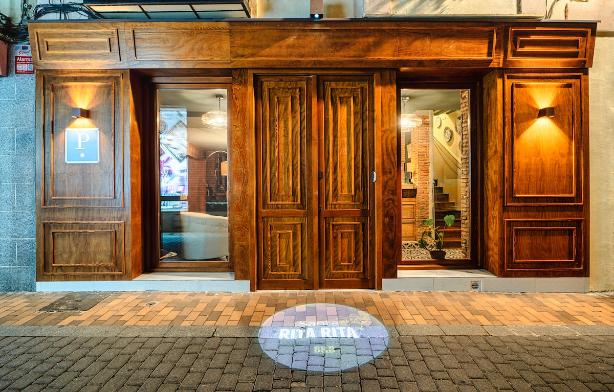 Located within the historic walls of Avila, our apartament offers an unbeatable location, just steps from the Plaza Mayor. It stands out for its modern design and stylish decoration, with 3 spacious rooms, a bright living room and a terrace equipped with a dartboard, mini golf and hanging armchairs. Every detail is designed to provide you with a unique experience, combining comfort and elegance in a historic setting. Only 1 hour from Madrid, Salamanca and Segovia by public transport or by car.