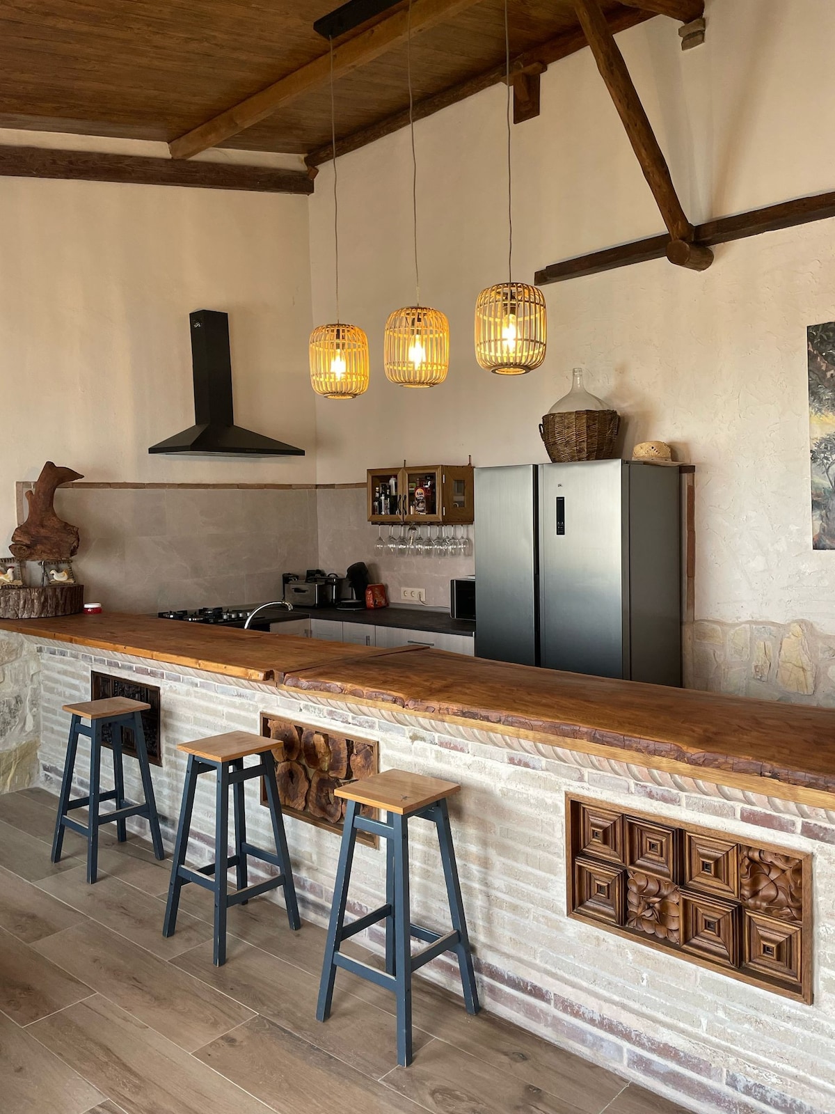Casita independiente. Espacio abierto de cocina y salón. Dormitorio con cama de 1,50 cm y sofá cama en el salón. Super tele de 86 pulgadas. Enormes ventanales que proporcionan una luz increíble a la estancia ofreciendo multiples salidas al jardín exterior donde se encuentra la piscina privada. Sauna Finlandesa en el baño. Ubicación ideal para visitar la ciudad de Toledo y el Puy du Fou España, ambos destinos a 10 minutos en coche. Pensada para el relax y el sosiego. Todo nuevo a estrenar.