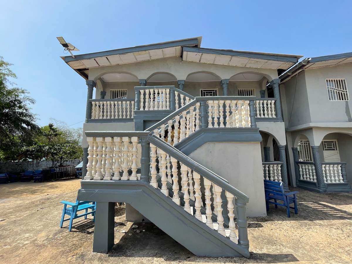 Relax with the whole family at this peaceful place it is a comfortable “home away from home” on a hill located in Adonkia. We are approximately 10 miles from the capital city of Freetown and a short distance away from some popular beaches, including the world-famous Number 2 river. The facility has 2 double rooms, a one-bedroom apartment and a two-bedroom apartment which comes with a day room. All apartments are fully furnished. Fantastic sea and hilltop views are accessible from our balcony.
