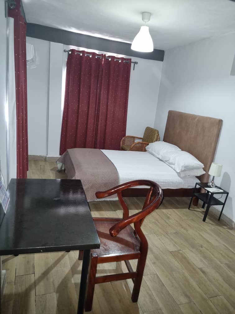 This add is for a private bedroom in any of our vacant apt. for individual who can not afford to take the entire 3/2 bedroom apartment. With this offer kitchen, living room and dining room are shared common spaces. This deal comes with 1 private BDRM suite. Each RM has an air conditioner, water heater, full BR, wireless internet. The apt. are located at the main highway of Leicester Road leading to the US embassy about 1 mile. We provide back generator service for prime time from 7pm to 7am