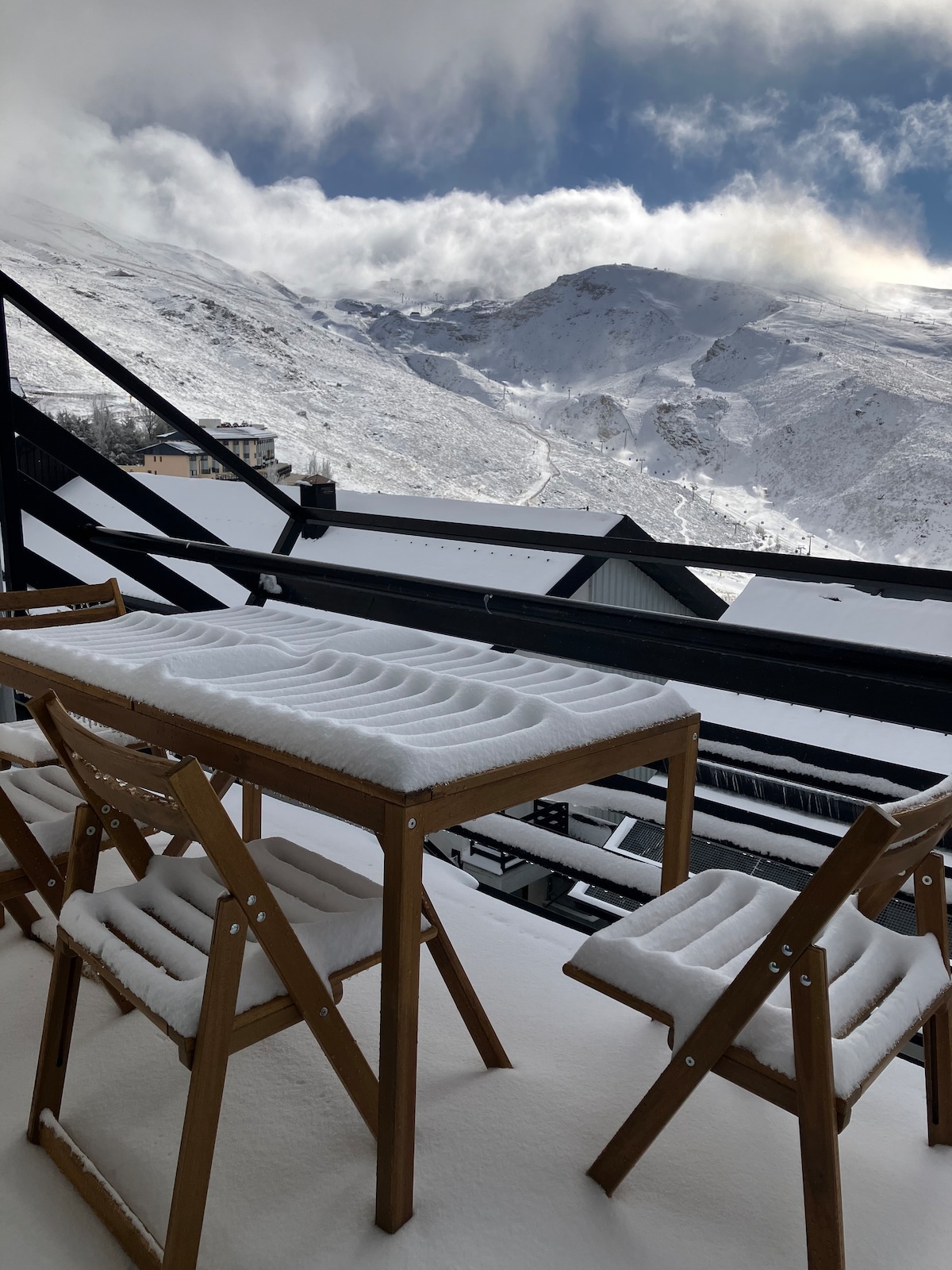 Apartamento recien reformado en edificio Alpes, dispone de una terraza espectacular con vistas al Veleta, garaje privado gratuito! -A 5 minutos andando del telesilla parador y la pista del Aguila que baja directamente a la plaza -Situado en calle del torcal, zona muy tranquila, ideal para familias - incluye, lavadora, cuna , sabanas, edredones, productos de limpieza, jabon, champu, toallas, papel higienico, unas capsulas de cafe dolce gusto, trapos esponjas y todo el menaje de cocina necesario