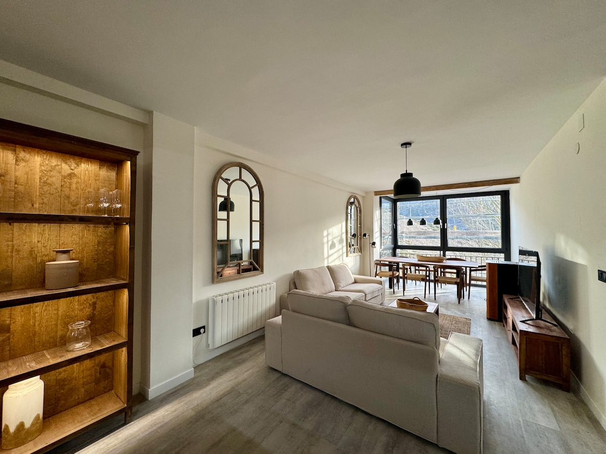 Apartamento situado en zona media en uno de los edificios mas nuevos de la estación, el Edificio Monte Oiz 2. Apartamento para 4 personas con salon-cocina, un dormitorio , un cuarto de baño y garaje. Está actualmente en proceso de renovación, por lo que aún faltan algunos detalles decorativos. Muy buenas vistas y bien ubicado a 360 metros de la primera parada del telesilla, a 10min andando de la plaza principal y con parada de autobús en la puerta.