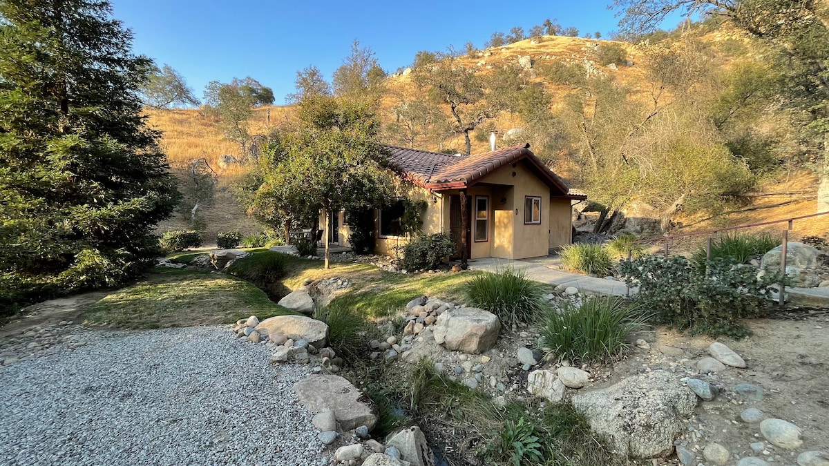 Keep it simple at this peaceful and centrally-located place. No neighbors, very private retreat with custom stone details. Located on a private ranch 2miles off of Hwy 41 with walking trails, and lots of wildlife as well as chickens, lambs and a horse! 7 min to the Historic town of Coarsegold, 15 min from Oakhurst and 35 min to the Yosemite National Park southern park entrance off of Hwy 41.