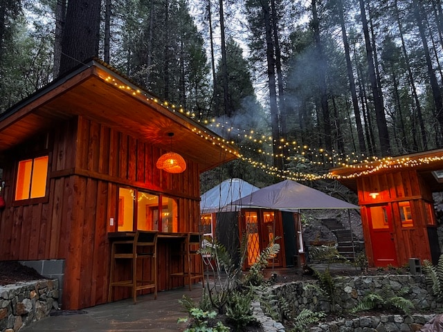 This is not just a stay, it is an experience ! Nestled under a canopy of trees, between ancient rocks, the Dome sits on an elevated deck with breathtaking vistas. The Dome features a panoramic window, providing stunning views. Situated on a 3-acre private property in the center of Three Rivers, California, the Dome offers an ideal location. Features include one queen size bed , a bathroom, a kitchenette with a microwave, small fridge and coffee maker. Wi-Fi and a Smart TV are also included.