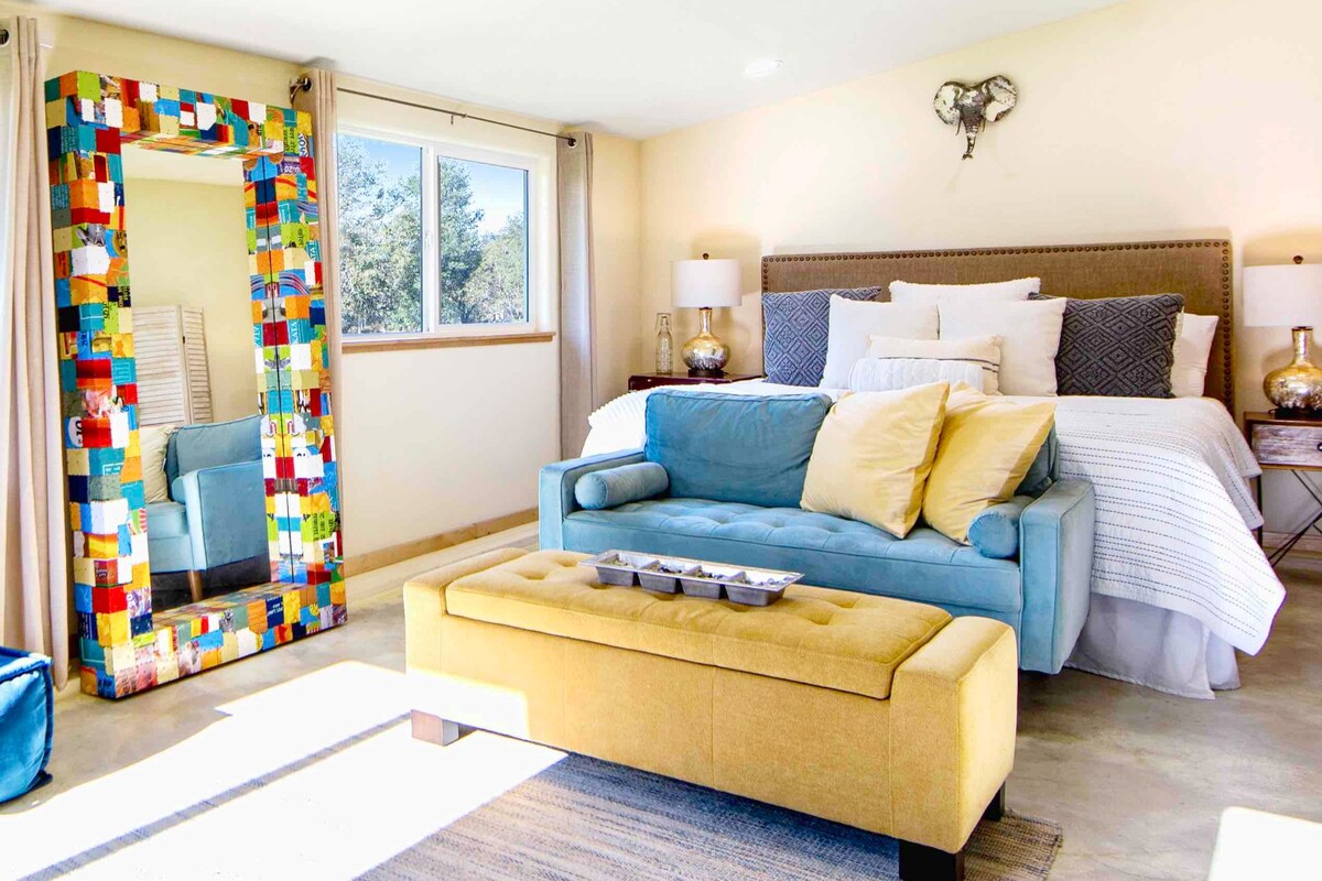 A boutique farm retreat, elevated and rare, with concrete floors and artisan care. Rainbow eggs greet you when you arrive, alongside rich coffee and wide-open sky. Horses roam pastures just beyond the glass, a private hot tub, and room to relax. Barn doors glide, natural light pours, a curated escape with thoughtful decor. Designed for rest, crafted with style, luxury that greets you with a wine country smile. Slow down, settle in, savor the stay -this is where comfort meets your unique getaway!