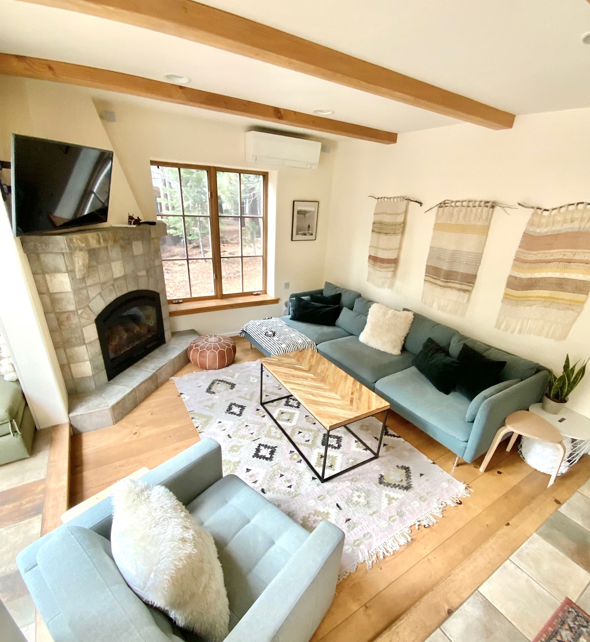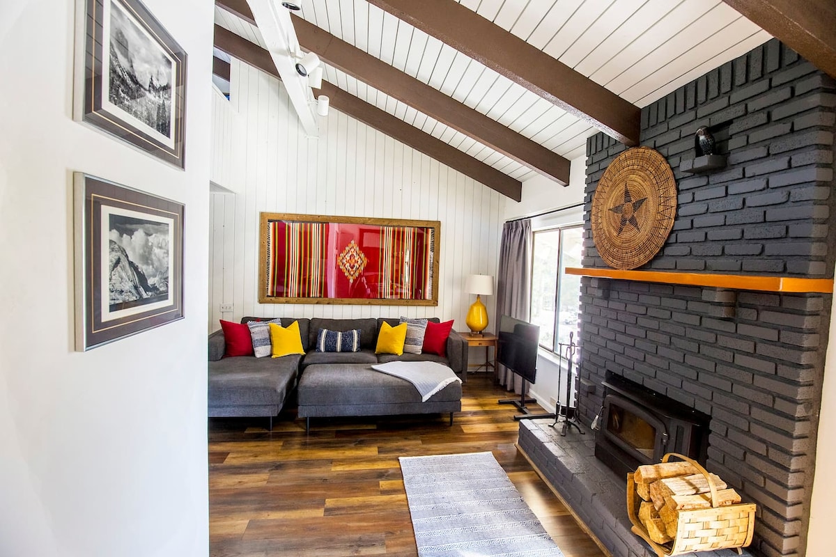 Welcome to your home base for mountain adventures! ~800 square feet of colorful, mid-60’s A-frame. Enter into a double-height living room with exposed wood ceiling, open king-bed sleeping loft above and fully-stocked kitchenette below. There is a second bedroom and bathroom on the ground level. Your hosts are vintage sci-fi fans and artists, with influences and work throughout the place. See what we're currently working on and some local points of interest at our IG account @triangle.house !