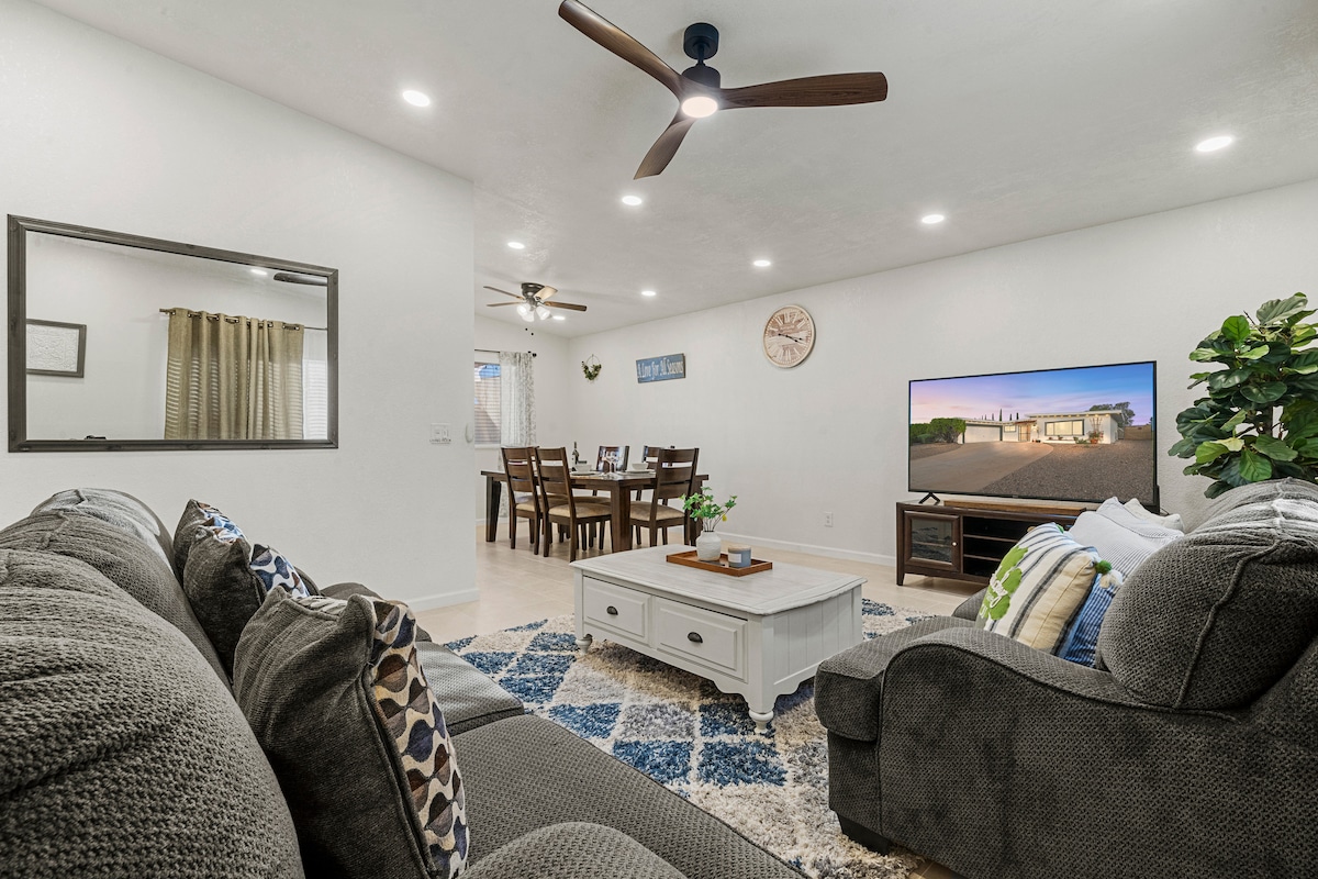 This bright, spacious, centrally located home just minutes from the Country Club, shopping, grocery stores, and Fort Huachuca! This split floorplan is perfect for family, friends, & furry companions! Enjoy fun board games, a large backyard with a firepit, and plenty of space for activities! Planning an event? We offer a Jumping Castle, tables, chairs, and a 360 photo booth to make it extra special. Just let us know what you need – we’re here to help make your stay unforgettable!