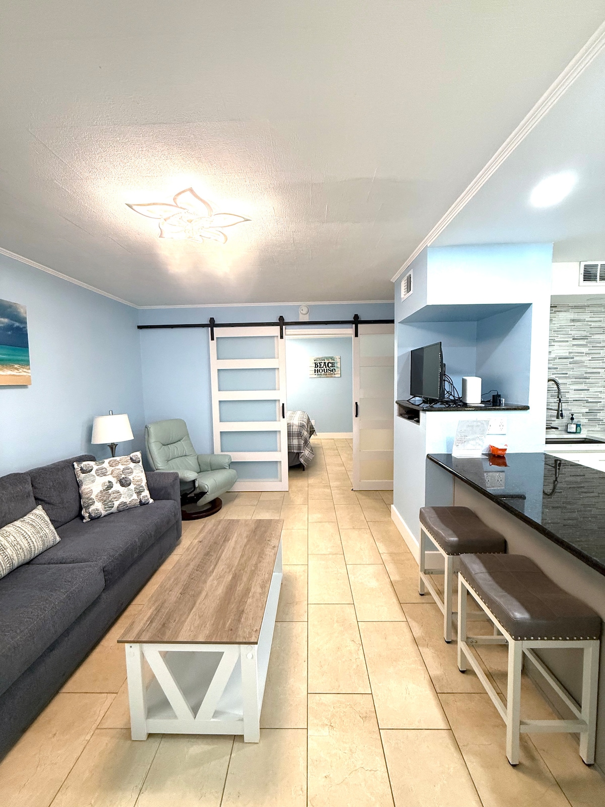 翻修一新的海滨公寓,可直达海滩