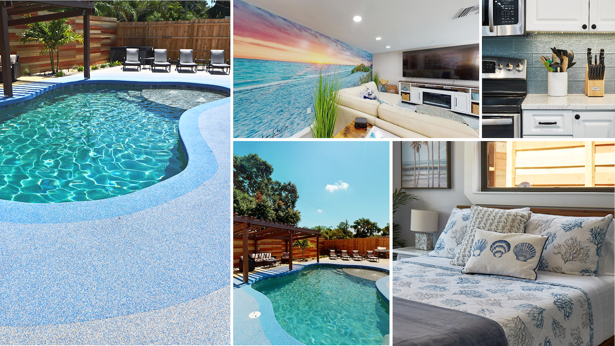 Stay at one of Sarasota’s top-rated Airbnbs, perfectly centered between the ever famous Siesta Key and several other stunning beaches. Lounge by the newly renovated heated pool with upscale chaise lounge chairs, lush garden views, and a stylish patio with ample seating. Inside, enjoy a modern, beach vacation themed design with an open layout, fully stocked kitchen, fast WiFi, and Smart TVs in every bedroom. Your on-site Superhost is nearby but works full time and gives total privacy.
