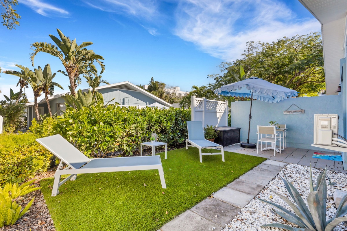 Walk to siesta beach from this stylish village house. Perfect for couples & group trips. The home is in a central location on Siesta key. Walking distance to Siesta Key village and beach access 7 (1/2 mile). Enjoy the oversized private patio and with garden views or hop on a bike to siesta beach in less than 5 minutes. Both Siesta Key village and Beach access 7 are less than 1/2 mile from the home. Bikes available onsite ($40 per bike per stay) Pet fee $95