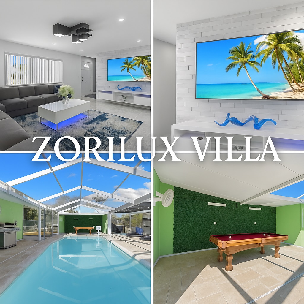 ZoriLux Villa is a handcrafted Sarasota retreat designed to elevate your vacation. This modern gem features a private pool, pool table, firepit, BBQ with fuel & tools, and luxe sun loungers—every amenity chosen to deliver a perfect, luxurious escape. Whether you're here to unwind or entertain, ZoriLux offers a curated blend of comfort, style, and resort-level vibes.