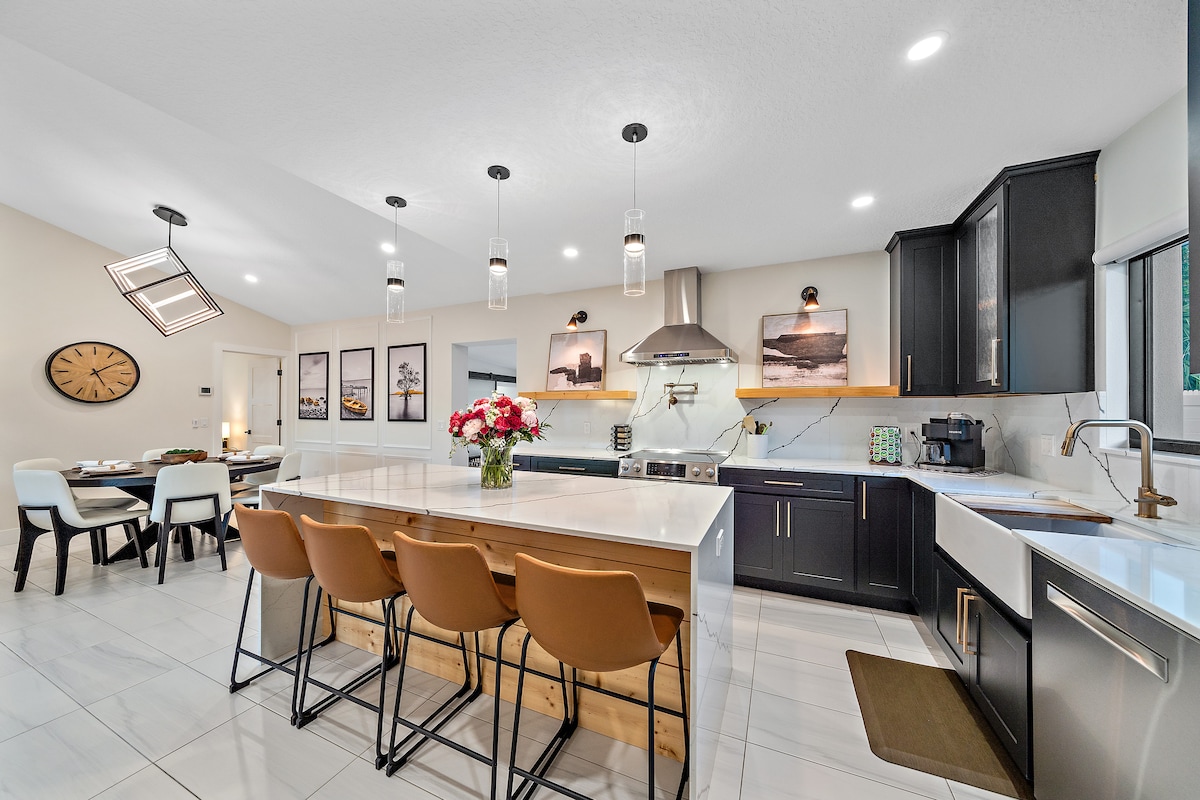 BNB Breeze presents Serenity Springs! Experience this stunning, peaceful oasis in the heart of Sarasota, located moments from the picturesque beaches! This home is Fully Loaded with awesome amenities. - Private Heated Pool - heated at NO extra cost from Nov 21 - April 1st - Whole home Water filtration system - Rooftop Perch (the Best sunsets) - Outdoor Dining and Sitting Areas - Outdoor Ping Pong Table - Breville Espresso Machine + Syrups - 2 Stunning floors of stylish design
