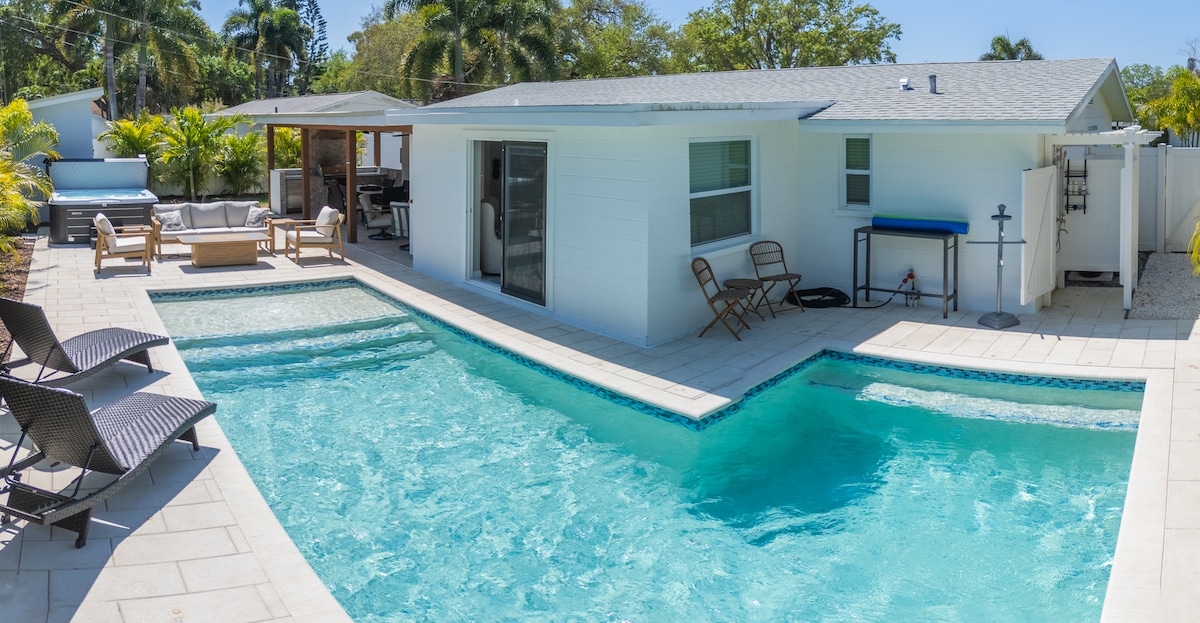 🌴Welcome to Beachway Haven! This 5-Star ⭐️ hideaway is just mins from Anna Maria Island's Pristine Beaches & the Gulf of Mexico. Dive into relaxation with your own Heated Saltwater Pool & Spa Hot Tub, nestled in a tropical oasis. Only a skip away from Golf Courses, Nature Parks, IMG Academy, & Palma Sola Causeway's Beach Access – your gateway to Horseback Riding, Kayaking, & endless sandy adventures. Shopping & dining are only a few mins away too!