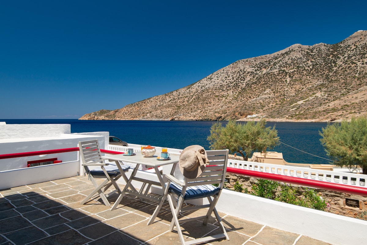 Situated at the serene end of the traditional Cycladic village of Vathi, just few steps away from the beach. Sea-fnos beach house offers a unique breathtaking panoramic view of the port of Vathi to be enjoyed from the two private verandas. The magnificent view to the sea, the homely atmosphere combined with discreet luxury and the privacy provided at the spot, make this holiday house an ideal destination!