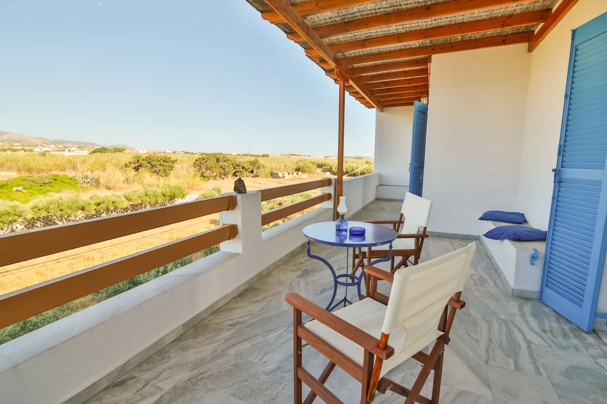 It's a cottage house on a very quiet and peaceful place on the northeast side of the island. You have an amazing view to the Aegean Sea, which gives you the opportunity to relax and rest while being on your vacation. There is one master bedroom with a queen bed with a Grecostrom Bodytopia Series matress and two single beds in the resting area which is shared with the kitchen. It's also fully equipped kitchen and a bathroom, which will give you the ability to enjoy your vacation at your own pace.