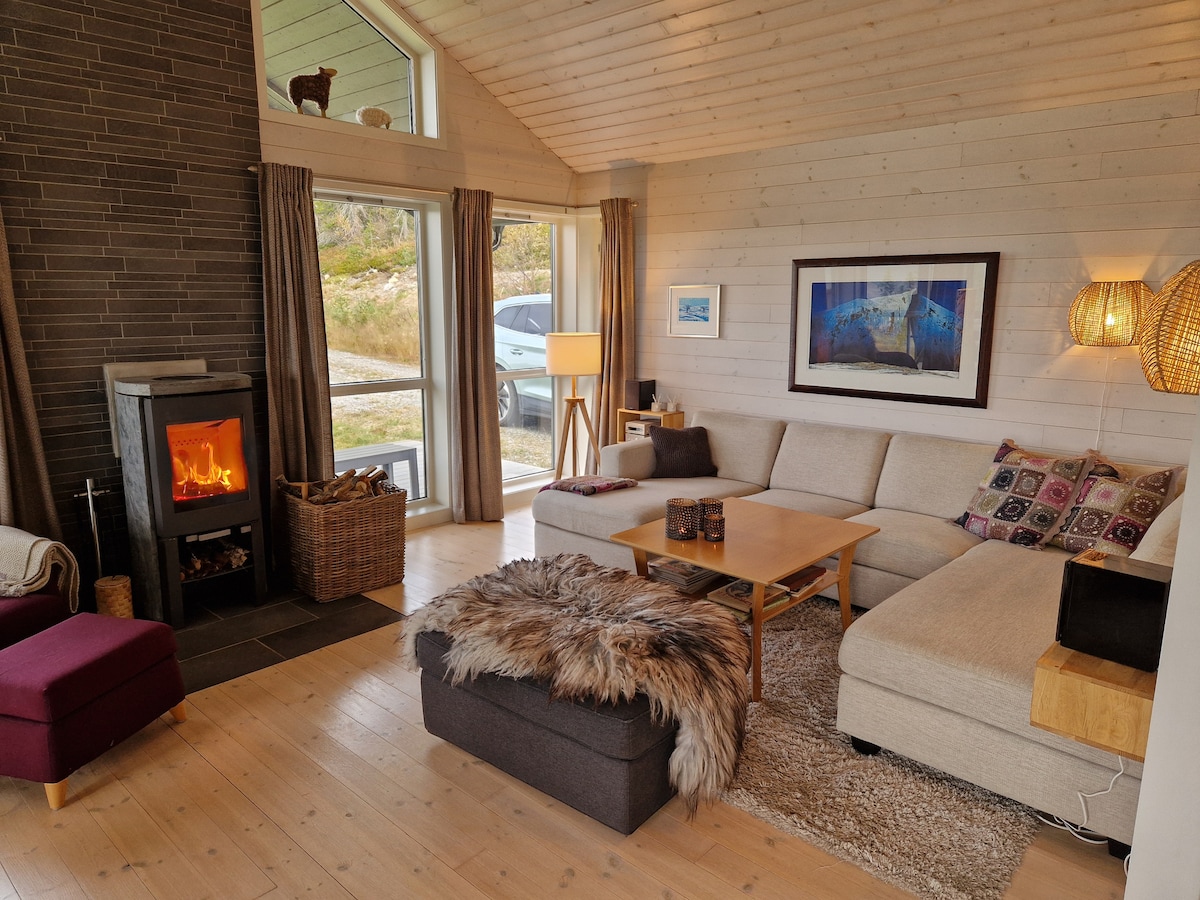Newly built mountain lodge (2022) in massive wood. The apartment is inviting and cosy, with interior in Scandinavian style. You will find all the comfort and equipment you need to relax & enjoy delicious food and company after an active day! Have your morning coffee outside in the sun, overlooking the mountain tops. Light a fire, enjoy the views from the sofa & makes use of our books or boardgames. Maybe you prefer watching a movie on The Frame? Have a good night sleep in the fresh air!