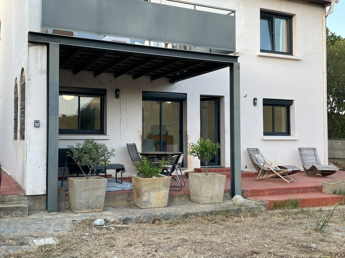 Logement avec du charme et entièrement rénové! Il est proche du Centre ville,la mer a 5 km,les étangs à 3 km,la réserve africaine,la frontière espagnole a 1 h (autoroute),la cité de Carcassonne a 1 h (autoroute),et les châteaux cathares! Vous l'apprécierez pour ses pièces spacieuses, sa luminosité , son coin barbecue/terrasse et son garage avec porte automatique ( tout équipé : four, machine à laver,sèche-linge ) il est parfait pour les couples, les voyageurs en solo et les familles.