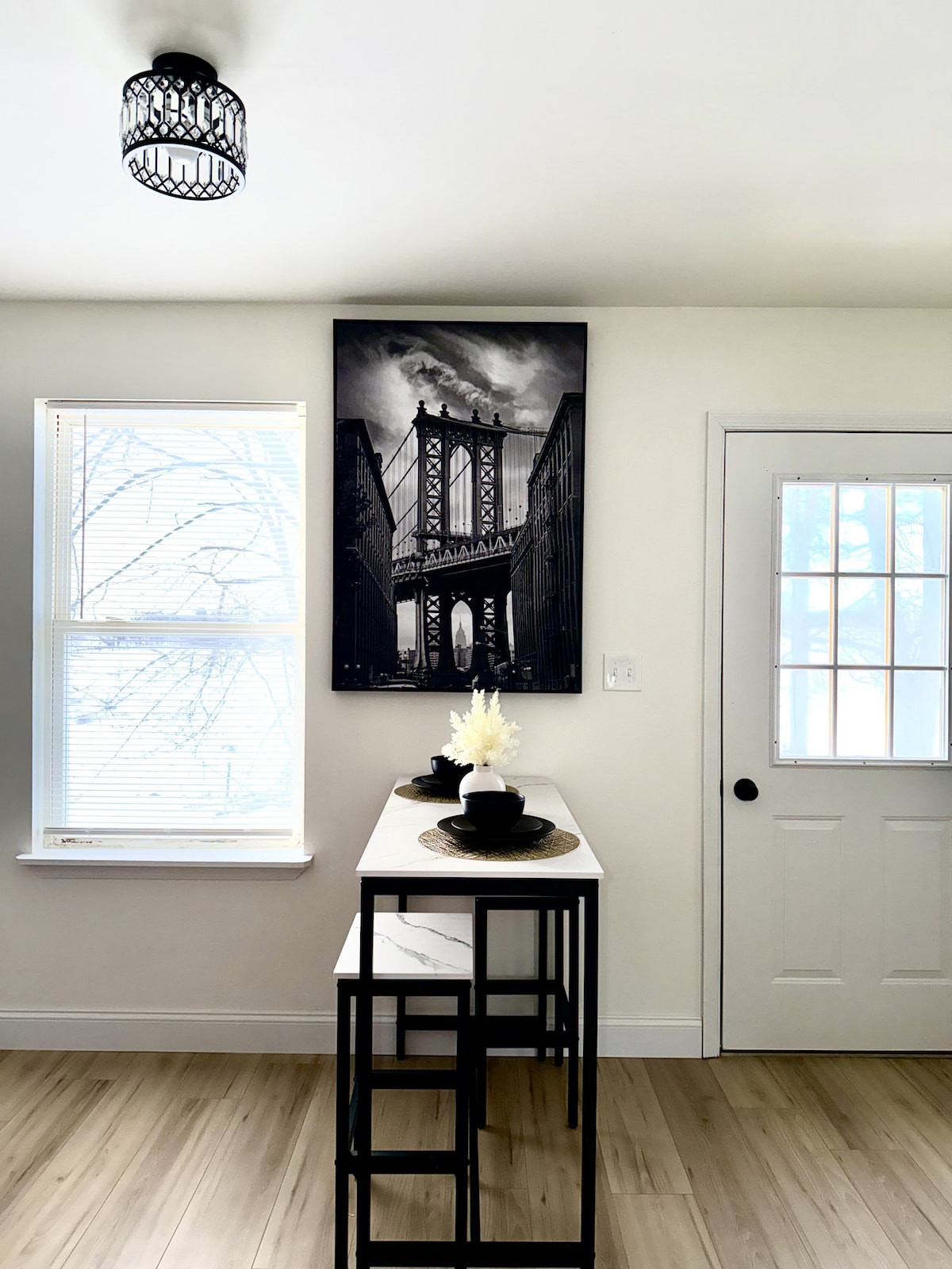 Welcome to your cozy woodland retreat! Nestled in a serene forest, this charming one-bedroom Airbnb offers a perfect blend of style and tranquility. Designed with a modern aesthetic, the space features chic furnishings, warm modern accents, and large windows that invite natural light and breathtaking views of the surrounding trees.