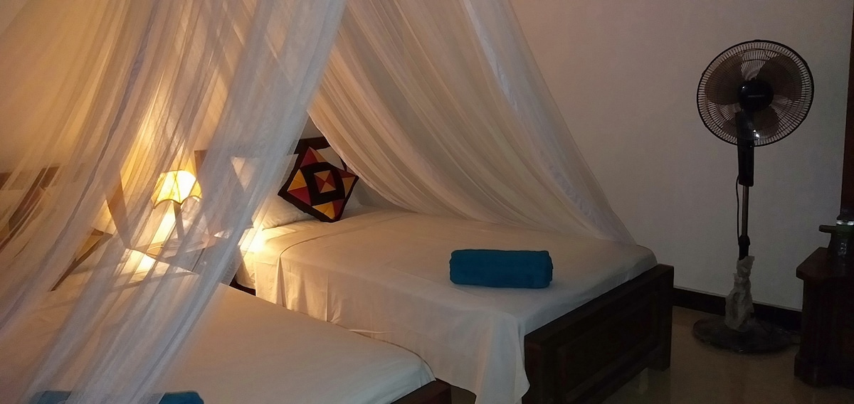 🏠 Air-conditioned family unit with pvt bath and garden views, in a cozy stay at the heart of Sri Lanka’s Cultural Triangle, just 2min to Golden Temple, 30min to Sigiriya. Ideal for families, friends, and cultural explorers seeking comfort n convenience ▶ Highlights: ✧ Peaceful garden setting with outdoor seating ✧ Free Wi-Fi ✧ Parking ✧ 24-hour Room service ✧ Steps from Dambulla Cave Temple & Rangiri Stadium ✧ Near Ibbankatuwa Tombs & Kaludiya Pokuna ✧ Car hire for easy exploring