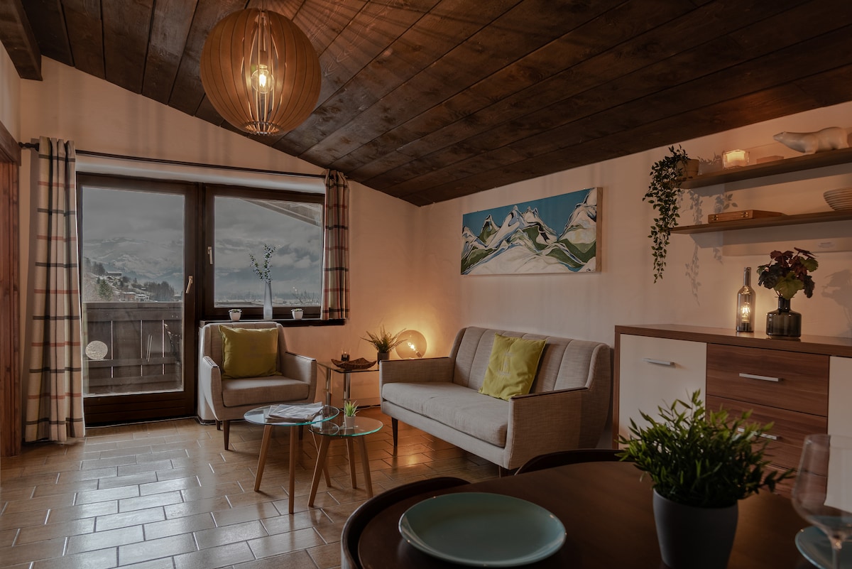 全景公寓,可俯瞰Kitzblick,配有泳池和阳台