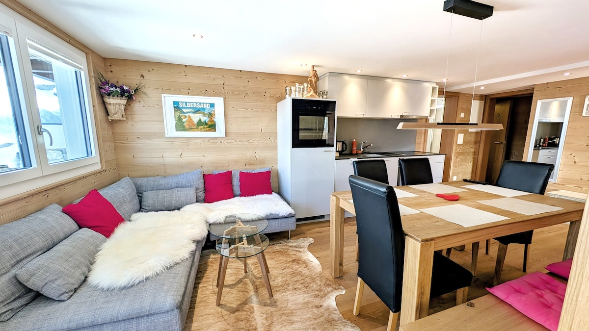 Nordisch eingerichtetes B&B im renovierten 100-jährigen ehemaligen Bauernhaus. 3 Schlittenhunde leben im Wintergarten & 1. Stock. Die Wohnung im Parterre hat: Schlafzimmer mit Blick auf die Berge | Kinderzimmer/Bibliothek | Infrarot-Sauna | Ess-/Wohnraum mit Schwedenofen & Schlafsofa | Küche | kleines Badezimmer. Die Zimmerhöhe im Bad, im Kinderzimmer und im Schlafzimmer ist 1.83 m. Die anderen Zimmer sind normal hoch. Die PanoramaCard Thunersee (Gästekarte) ermöglicht dir Vergünstigungen.