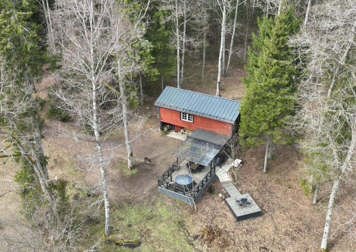 Escape to a cozy forest cabin made for two. Surrounded by peaceful nature, this private retreat includes a terrace, hot tub, sauna, and BBQ area. Perfect for couples seeking quiet, comfort, and a touch of magic. Enjoy evenings under the stars, lazy mornings with forest views, and relaxing moments by the fire. A unique stay where design, calm, and fairy-tale charm come together. Free parking. Fast Wi-Fi. Unwind and reconnect in style.