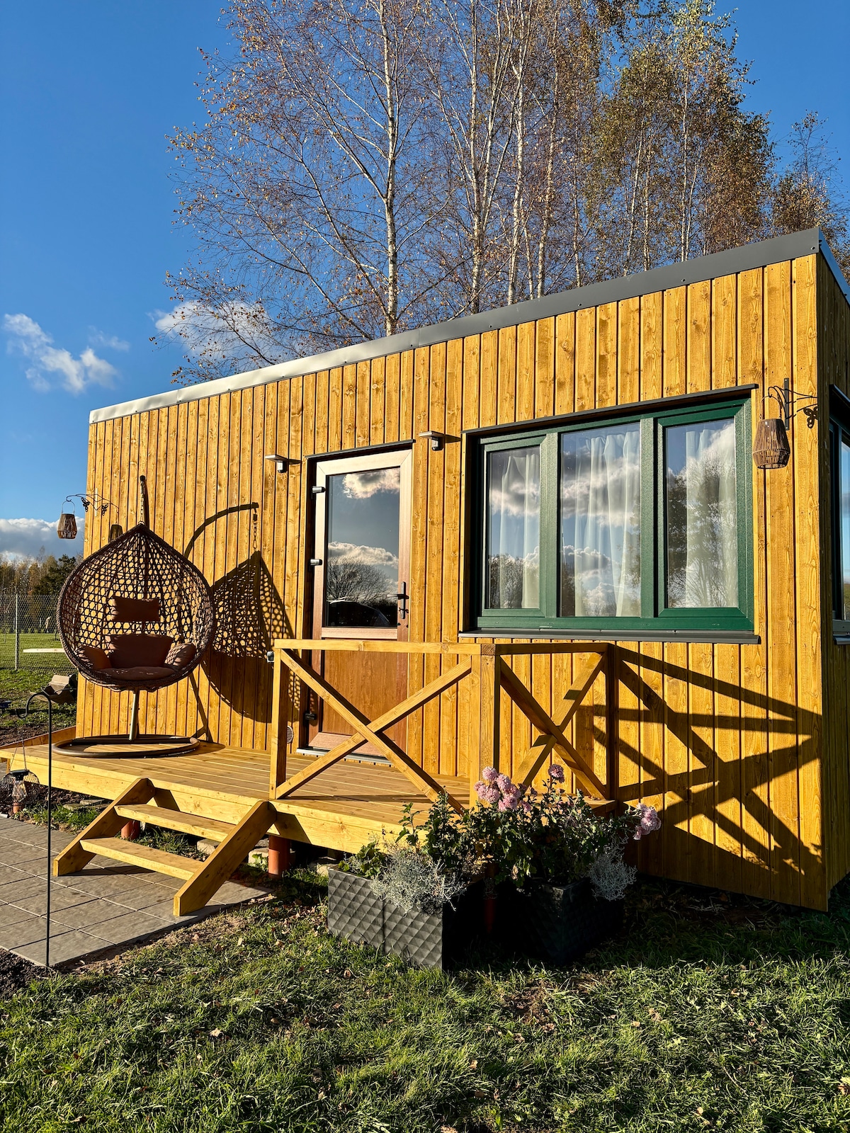 Atpūties gleznainā vietā, kur daba satiek komfortu. Mēness namiņš ir privāts brīvdienu namiņš ar skatu uz dīķi, ideāli piemērots pārim vai ģimenei ar bērniem. Viss nepieciešamais ērtai atpūtai: • Gultasvietas 4 personām (mansarda stāvs+dīvāns) • Virtuve ar visiem piederumiem, kafijas automāts un tēja • Privāta vannasistaba ar dvieļiem un fēnu • Terase ar grilu un pieeju ūdenim • Kubls ar LED un masāžu Baudiet nesteidzīgu atpūtu pie dabas un zvaigžņotas debesis.
