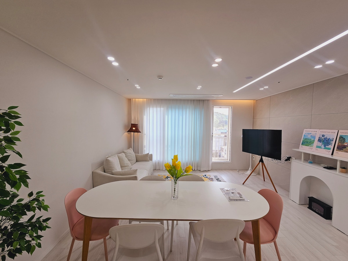 - 세련된 인테리어와 넉넉한 공간을 갖춘 대형 룸 숙소로, 가족·친구와 함께 특별한 시간을 보내기에 적합합니다. - 거실의 통유리창 너머로 송도의 도심 전경이 시원하게 펼쳐지며, 퀸사이즈 침대 3개와 소파베드 2개, 호텔급 침구와 욕조를 갖추어 편안한 휴식을 제공합니다. - 거실 통유리창 너머로 송도 락페스티벌 공연장을 내려다볼 수 있는 프라이빗 VIP 뷰 객실입니다. - 주방에는 다양한 조리도구와 식기류가 완비되어 있어 가족 여행객은 물론 장기 숙박에도 편리합니다. - 송도국제도시 중심부에 위치해 지하철, 쇼핑몰, 카페거리, 심해수 온천 등 주요 편의시설 접근성이 뛰어나며, 조용하고 안전한 주거 환경 속에서 여유롭고 품격 있는 시간을 즐기실 수 있습니다.주요 편의시설 접근성이 뛰어나며, 조용하고 안전한 주거 환경 속에서 품격 있는 시간을 보내실 수 있습니다.