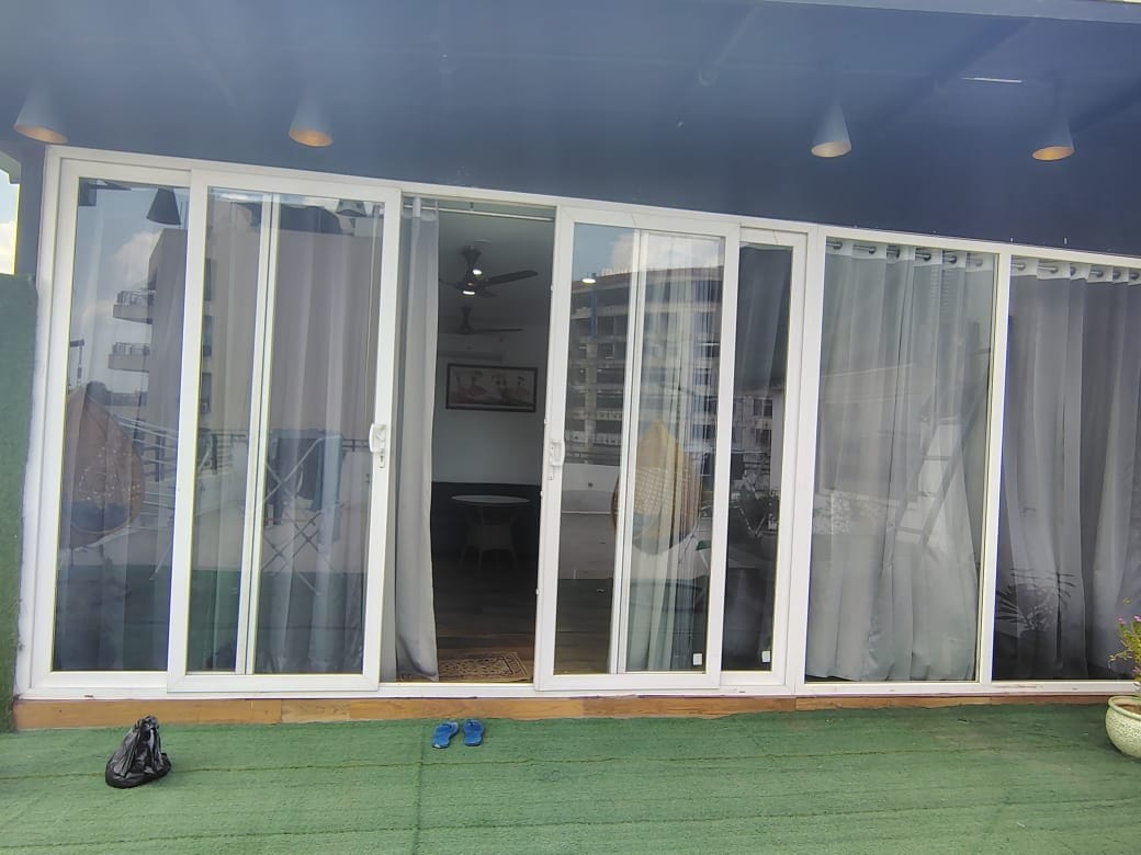 Nestled amidst the bustling Golf Course Road, yet offering a serene view of the Aravali forest range, this loft is a true urban oasis. Step into our spacious home with a living area, cozy dining area, and attached kitchen. Bedrooms offer rustic charm, comfy beds, ample storage, and access to peaceful terraces. A single bathroom is fully equipped. Enjoy views from two large terraces—one of the city and the other of the serene Aravali Forest, with a patio.