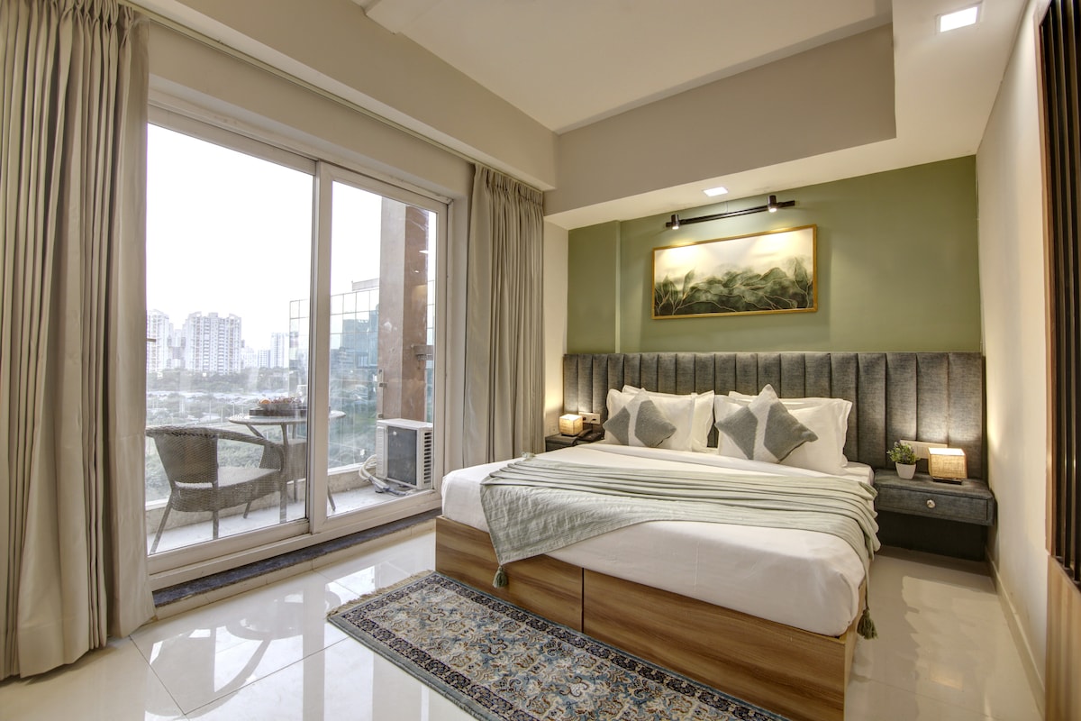 ◆Located in a prime area on Golf Course Road, Gurugram, ideal for both business & leisure travelers. ◆Just 21 minutes from IGI Airport. ◆35 minutes from Yashobhoomi Convention Centre. ◆Close to Max Hospital (3.4 Km) and Fortis Memorial Research Institute (3.2 Km). ◆On-site restaurant and banquet hall for dining and events. ◆Bedroom with Forest View. ◆Fully-serviced suite for a comfortable and convenient stay.