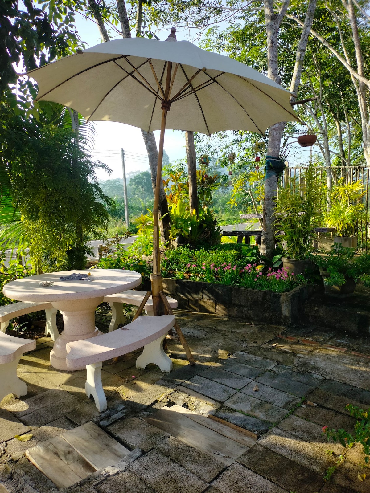 Ruhiges Homestay im Grünen für ruhesuchende und Langzeitgäste. Private Bungalows, herzliche Gastgeber, Restaurant mit sehr guter Küche. Offene, internationale Atmosphäre. 6 freundliche Hunde auf dem Gelände. Barrierefrei, incl. barrierefreiem Bungalow.