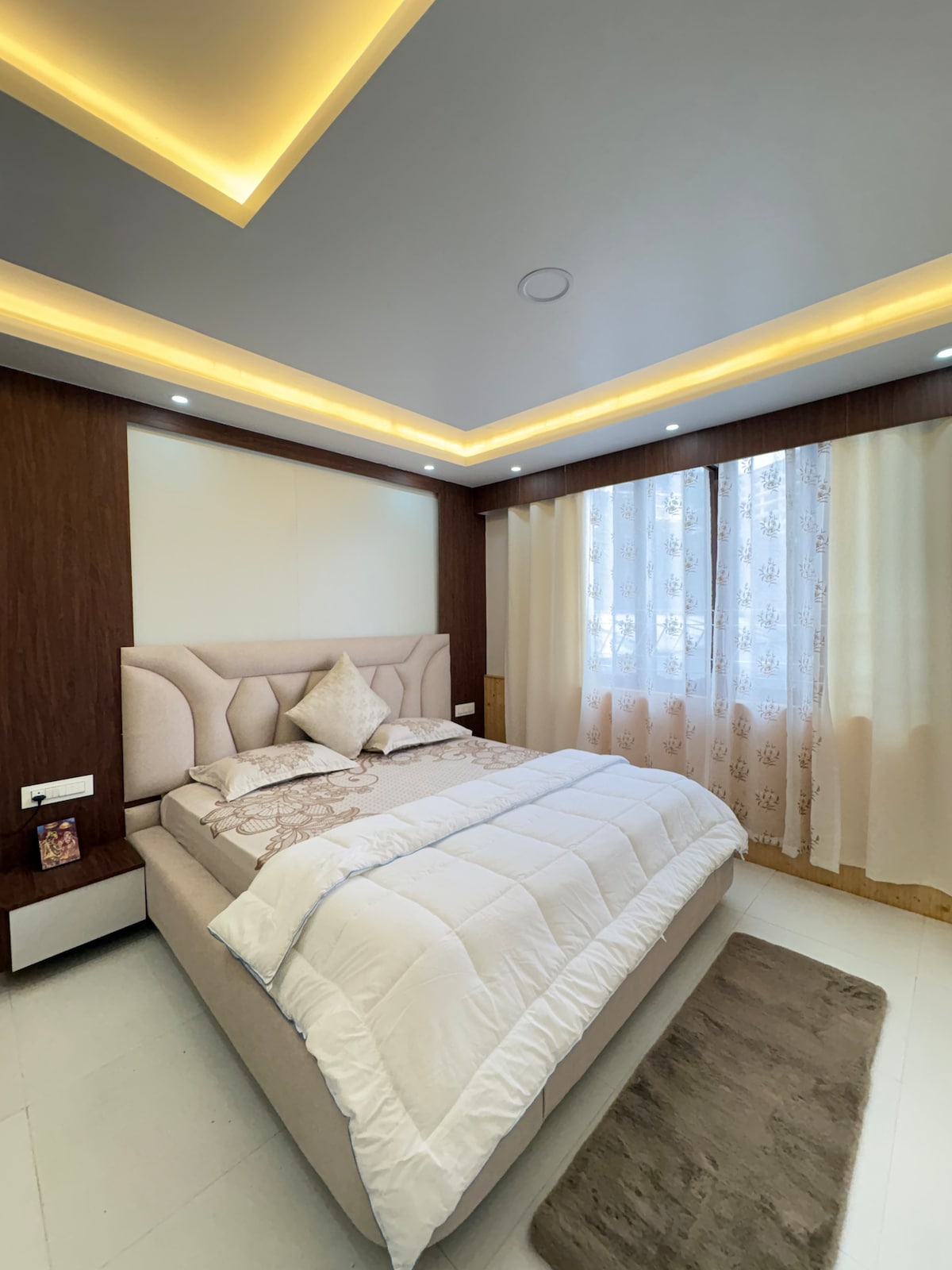 A spacious 3 BHK Serviced Apartment located in the centre of Gangtok town (200m from Mg Marg) showcasing a panoramic view of Gangtok. The property has a breath taking view of Mt. Kanchenjunga and Ranka valley. A mix of traditional & contemporary interior gives you a clam, homely and cozy vibe. Although it is located just 200m from the heart of town, the property is situated on the top 5th floor of the building. Therefore, the guests are required to walk up a bit from the main road.
