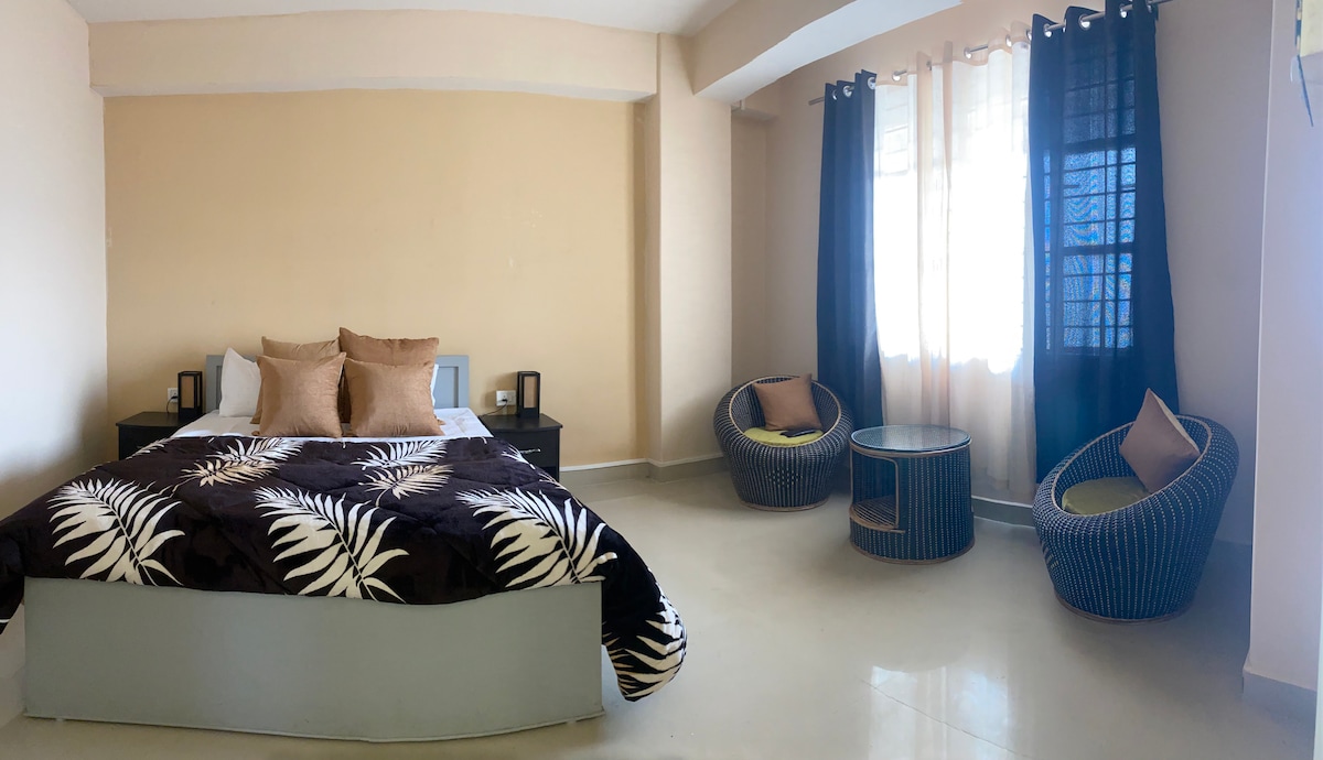 A spacious 3 BHK Serviced Apartment located in the centre of Gangtok town (200m from Mg Marg) showcasing a panoramic view of Gangtok. The property has a breath taking view of Mt. Kanchenjunga and Ranka valley. A mix of traditional & contemporary interior gives you a clam, homely and cozy vibe. Although it is located just 200m from the heart of town, the property is situated on the top 5th floor of the building. Therefore, the guests are required to walk up a bit from the main road.