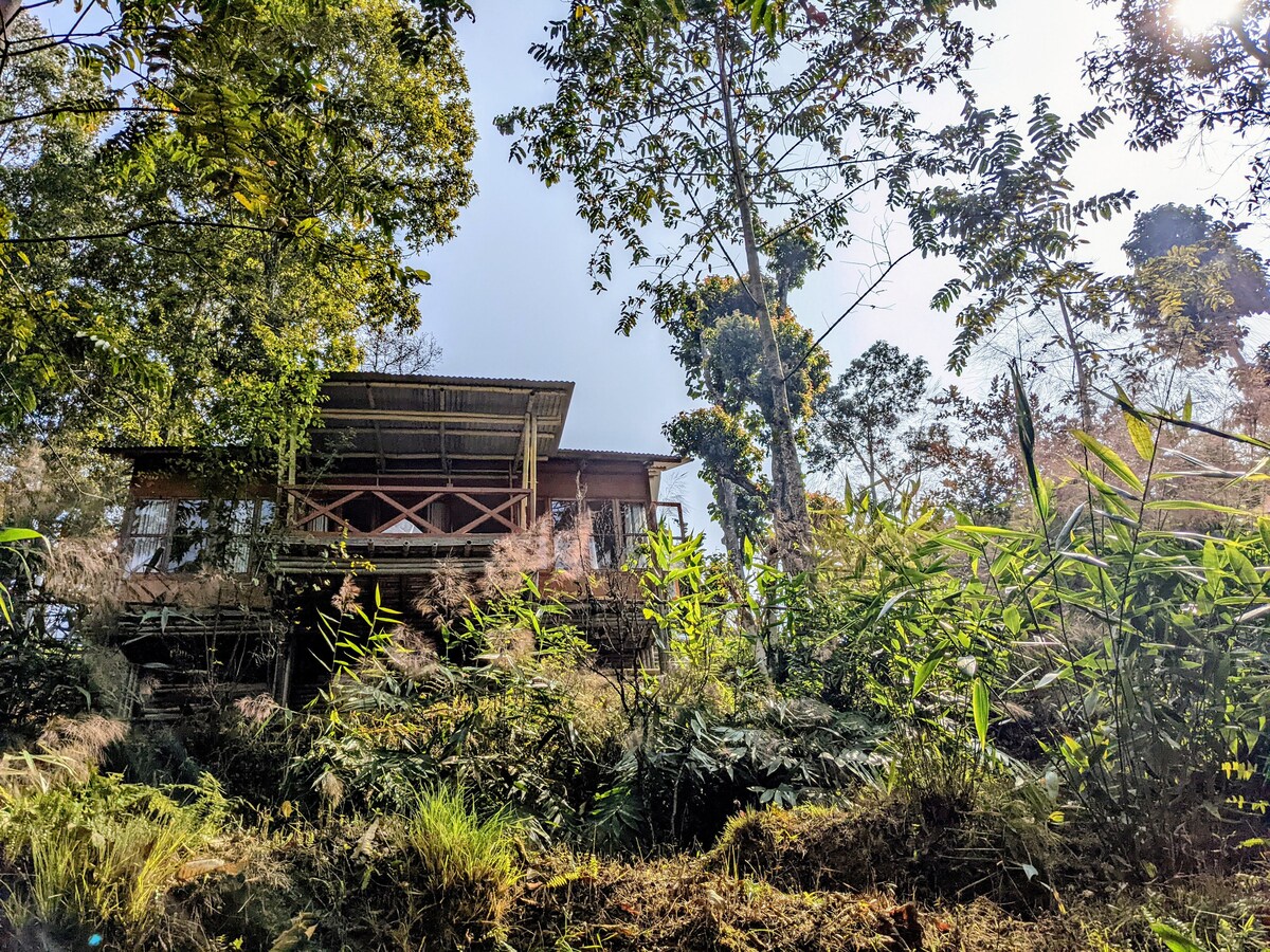 Come experience this unique cabin, built entirely of natural and recycled materials. Ideal for a Himalayan retreat experience or trekking to Sandakphu, the house is located directly below Samten monastery Rimbick, in the district of Darjeeling, state of West Bengal The monastery is a hundred years old institution, which was established in 1917. It is now a place where the villagers gather for prayer and to perform the various rites as per Bddhist traditions