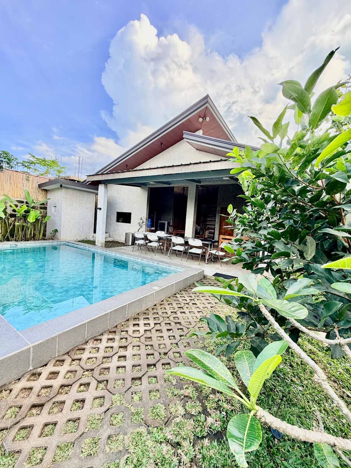 Mendez Memories ✨ Create lasting moments in this cozy, pet-friendly home with a leisure pool 🖤 Skip cramped condos and relax in comfort! 🏡 70sqm indoor | 50sqm backyard 👙 Pool, BBQ grill, Karaoke & Netflix 🐾 Fully fenced, FREE parking 💻 100 Mbps WiFi | 55” TV 🛁 2 Bathrooms w/ Heater & Bidet 8–12 pax capacity ▪️2 AC bedrooms ▪️1 pull-out bed, 1 bunk bed with pull-out, 1 day bed ▪️Sofa bed with pull-out on the GF Your stylish Tagaytay retreat for families, friends & fur babies.
