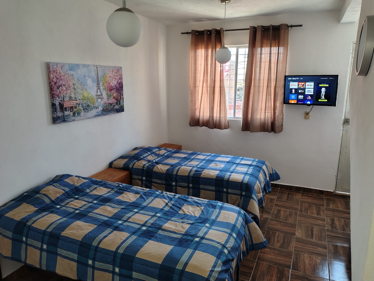 Bienvenidos a este Departamento que esta ubicado en la zona centro de Silao, estarás cerca de todo si te hospedas en este alojamiento céntrico, a 3 min del Mercado y 8 min de la Central de Autobuses (caminando). En el centro de la ciudad, encontrarás zona de bancos, tiendas de abarrotes, zona de comida, jardín principal, los portales, etc. Departamento en 2do. Piso cuenta con: Habitacion 1: Cama Matrimonial con TV Habitacion 2: Dos Camas Individuales Con TV y Sillon Cocina y Comedor Baño