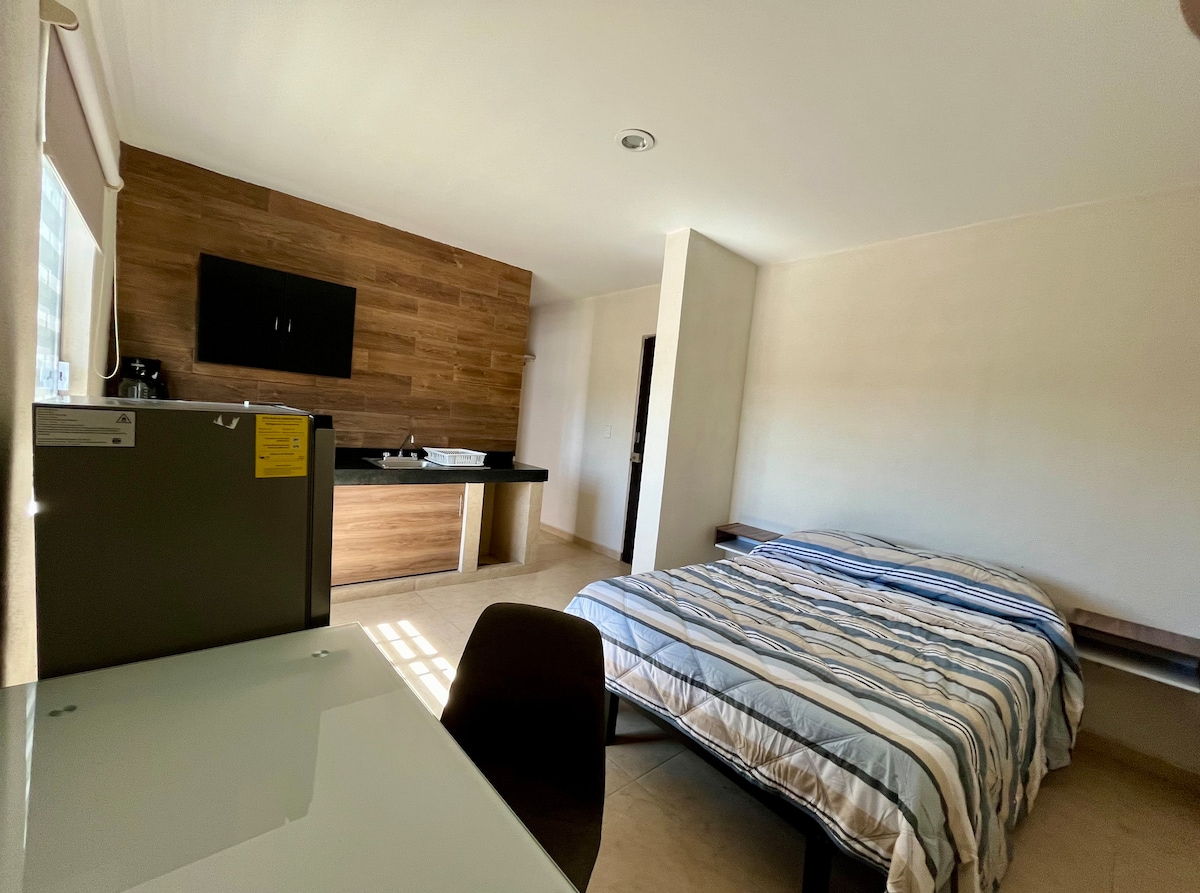 Ofrecemos cómodos y funcionales departamentos ideales para ti. Características: -Cama King size. -Televisión de 50". -Escritorio perfecto para trabajar o estudiar. -Cocina totalmente equipada. -Baño privado y limpio. -Estacionamiento en planta baja funcional. Servicios incluidos: -Agua, luz e internet. Ideal para tus estancias cortas o largas. ¡ Reserva ahora y haz de este espacio tu hogar temporal ! Ubicación privilegiada a una calle del hospital regional de alta especialidad.