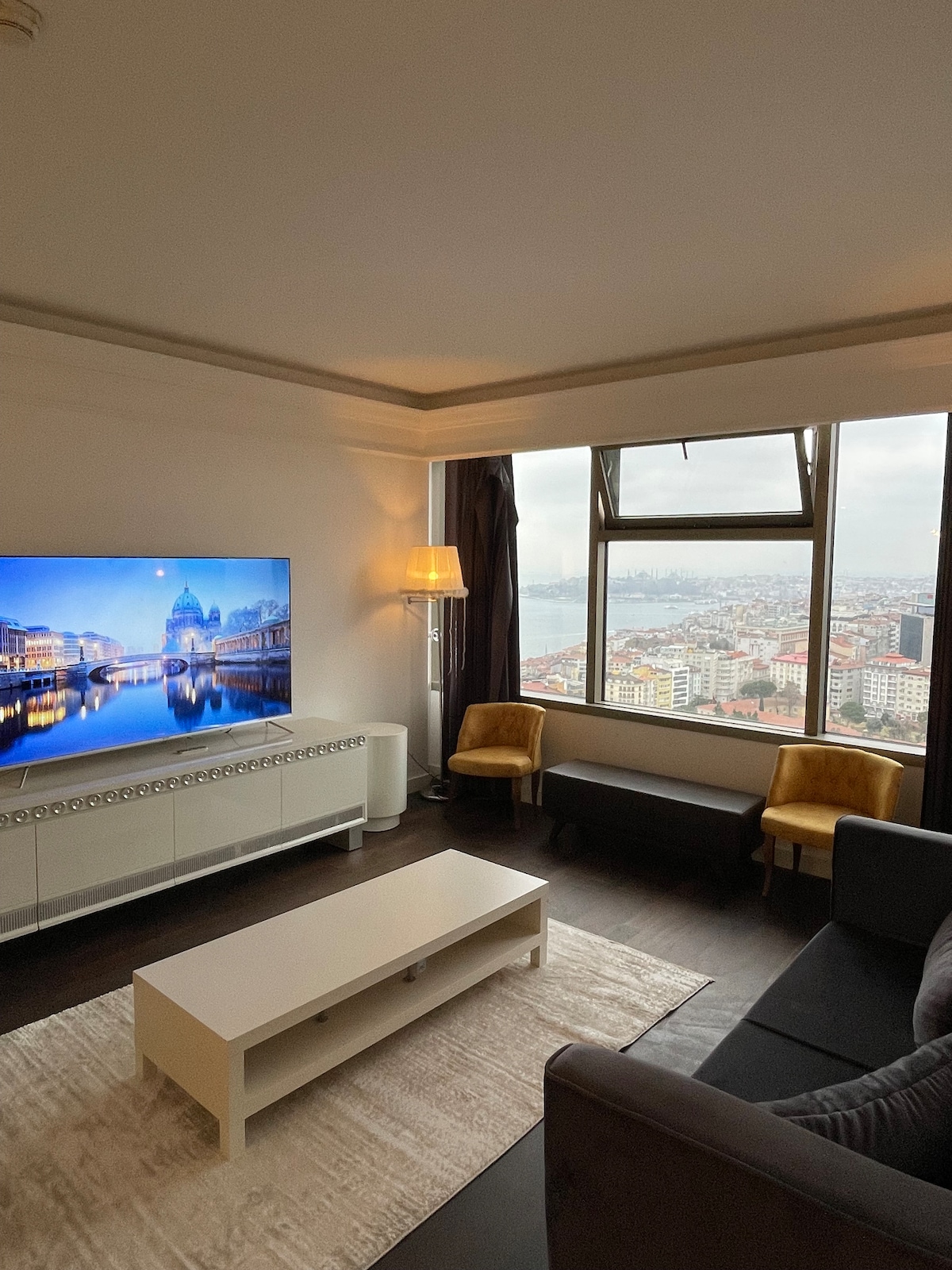 NEWLY RENOVATED! 4AC’s - ultra hd smart Tv- 1000mbps fiber internet- Visco Fully ergonomic Beds. Please be considered the apartment is located on 4th floor with no elevator. Bellboy service is provided on demand. One of the widest Bosphorus viewed apartment, The place is located very central location and close by to the all mean of transportations. Walking distance to the Taksim, Galataport, Tram, Bus and taxi station. The location is one of the safest and central area of İstanbul.