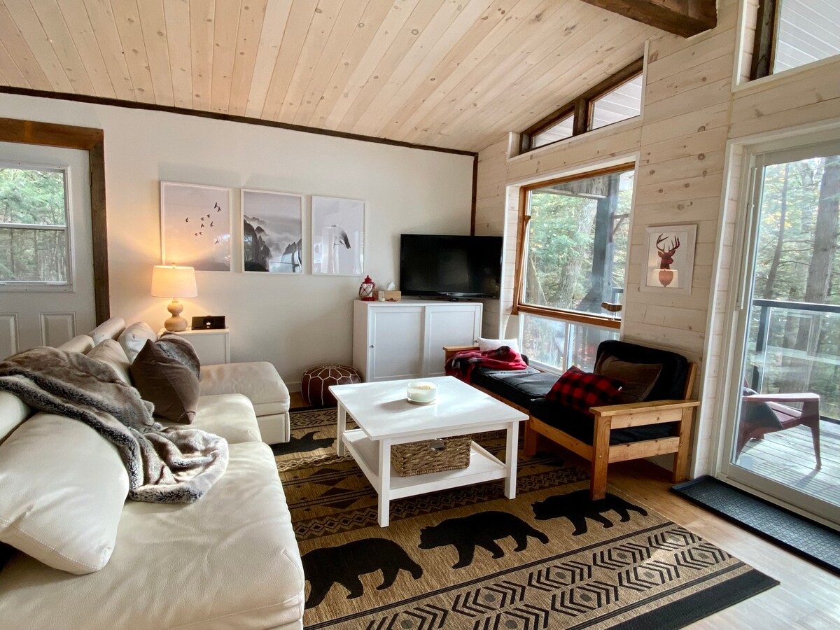Bring your cozy socks and your new book. Make the most of winter and book your ultimate winter getaway at Serenity Now cabin. No neighbours, no noise, just peace and quiet. Ideal for couples or solo adventurers seeking peace, nature, and movie nights with an 80" projector. Private trail (4-5km) for those adventurous souls - snowshoeing, and we provide an auger and fishing rods for ice fishing. We’re committed to creating a safe, welcoming space for all. 🏳️🌈