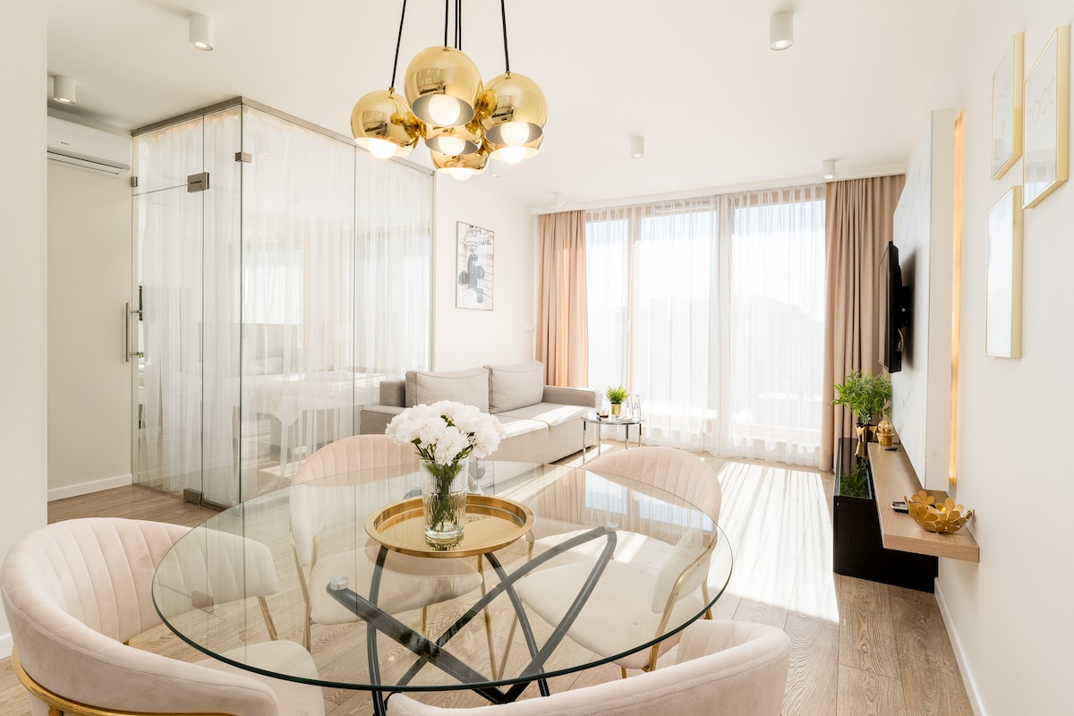 We invite you to a boutique studio(max. 4 people)(double sofa bed and double bed). It is a modern apartment, decorated in a glamor style, with a lot of glazing and decorative finishes. The kitchenette is fully equipped. The TV set offers local, terrestrial television, but also SMART options (e.g. netflix). The apartment is located in a building with an elevator, on one of the quiet streets of Krakow's Kazimierz (at the Vistula Boulevards, 500 m from Plac Wolnica, 800 m from Okrąglak). Free wifi