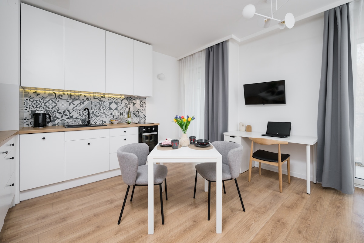 Komfortowe, w pełni wyposażone mieszkanie z balkonem, stworzone z myślą o dłuższych pobytach w Krakowie. Przemyślany układ i nowoczesne wykończenie zapewniają wygodę na co dzień – funkcjonalna kuchnia w zabudowie, wygodna strefa wypoczynku z rozkładaną kanapą, miejsce do pracy oraz smart TV. Balkon i okna wychodzą na spokojną, zieloną przestrzeń, dzięki czemu możesz cieszyć się prywatnością. Idealne dla osób pracujących zdalnie lub szukających komfortowego miejsca na kilka tygodni czy miesięcy.