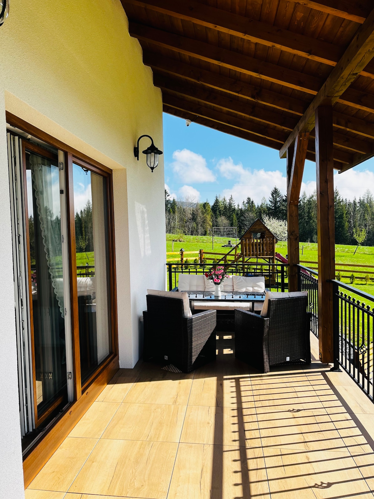 Find peace at "Closer to Heaven" a luxury retreat on Koskowa Mountain, 820m above sea level. Enjoy panoramic views of the Beskid Wyspowy and Tatra Mountains from a spacious terrace. This 88 sqm eco-friendly home is surrounded by 2,300 sqm of private land. Unwind in the year-round 5-person chlorine-free outdoor spa with 2 reclining massage seats. Pure spring tap water, an ice-maker fridge, and fast Wi-Fi add comfort. Trails, forests, and nature await – closer to heaven, closer to you.