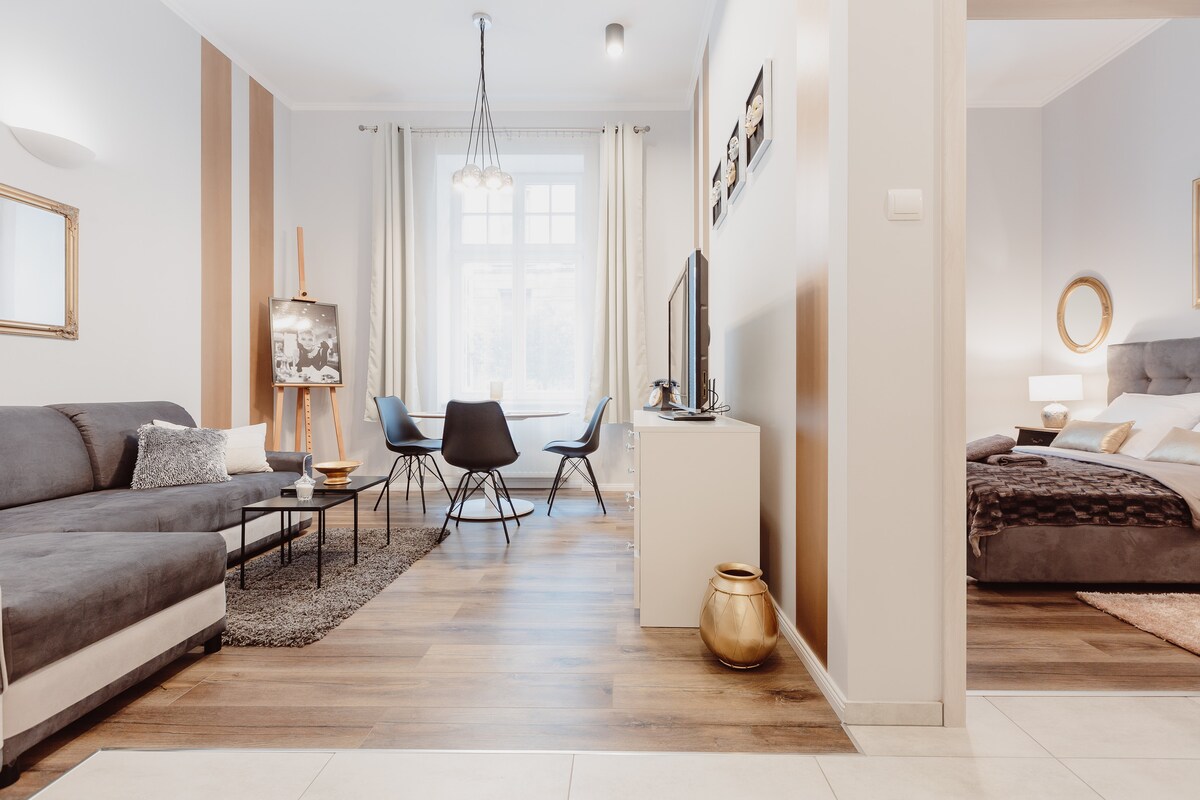 Vogue is modern, elegant, and spacious apartment in the heart of Cracow. Exclusively designed in high standard boutique fashion and located 2 minutes from the Old Town. Within 400m you will find our best known monuments and Wawel Castle. This central location gives convenient access to the whole city yet. Also nearby is Kraków Galeria, tram and train station, supermarkets, bars and restaurants. Apartment is completly new and include flat screen TVs, highspeed internet, air-conditioning.