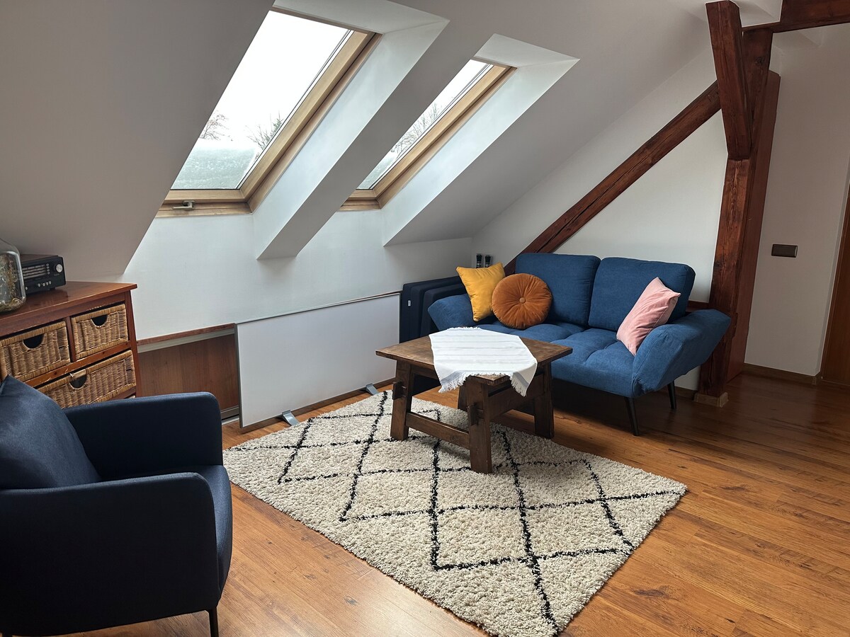 Przestronne i klimatyczne otwarte studio na poddaszu dwupiętrowego budynku blisko Uniwersytetu Medycznego. Idealne do pracy zdalnej, odwiedzenia rodziny, pobytu turystycznego lub związanego z leczeniem w Centrum Zdrowia Dziecka. Wyznaczone miejsce parkingowe pod domem. Second floor open-space loft close to the Medical University. Perfect for remote work, visiting family, sightseeing or medical treatment. Separate sleeping area, working space with a desk and a living area with a sofa.