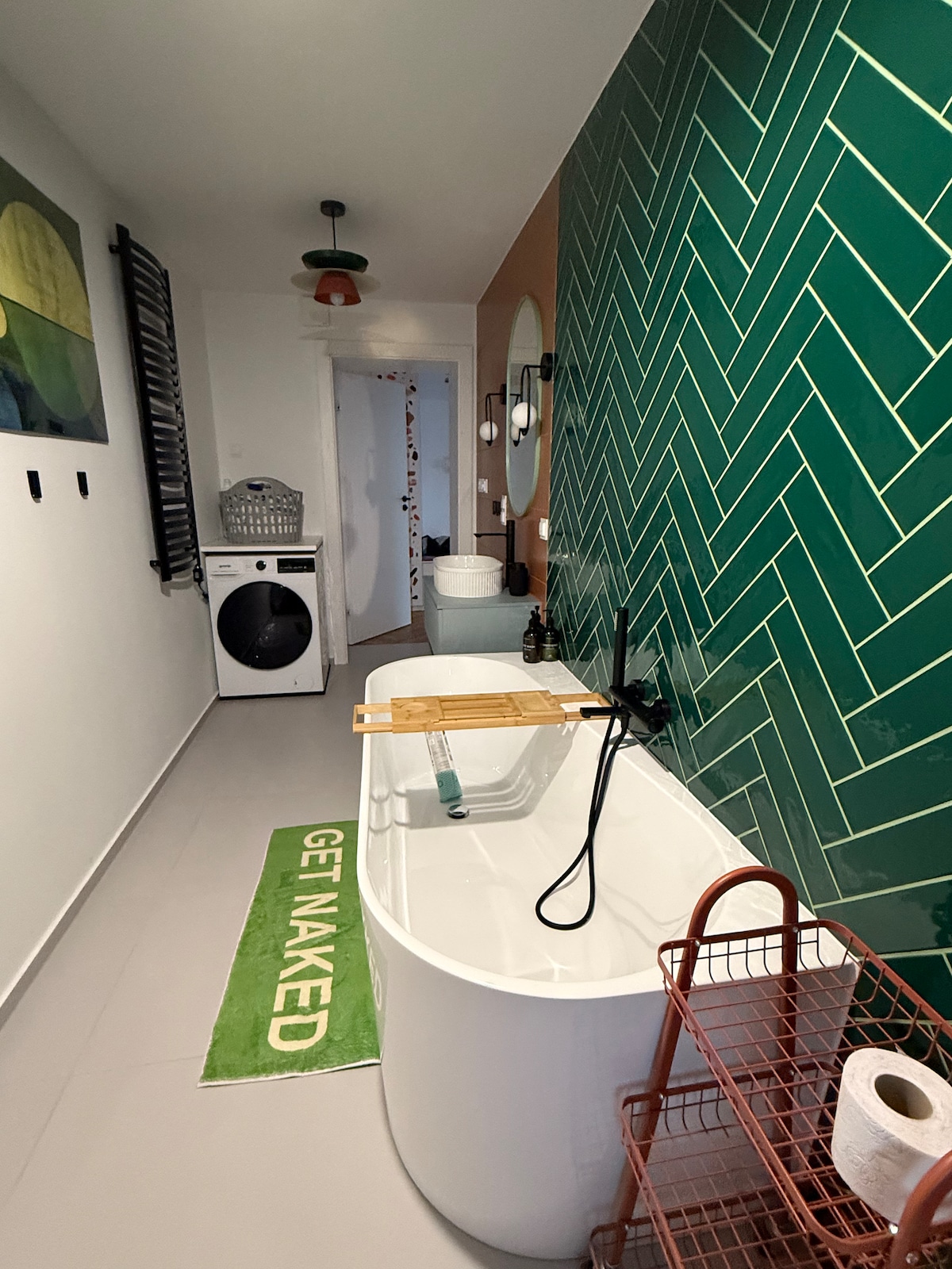 Witamy w wyjątkowym apartamencie w stylu Bauhaus. Apartament o powierzchni ponad 90m2 składa się z : -dużej sypialni z podwójnym łóżkiem oraz garderobą -małej sypialni z dwoma łóżkami pojedynczymi oraz wspaniałym ogromnym tarasem z widokiem na góry -małej sypialni z dwoma pojedynczymi łóżkami -nowoczesnej łazienki z wspaniałą wanną oraz pralko-suszarką -salonu z kominkiem połączonym z ogromnym nowoczesnym aneksem kuchennym. Na ogrodzie jest balia opalana drewnem pod piękną wiatą w cenie!