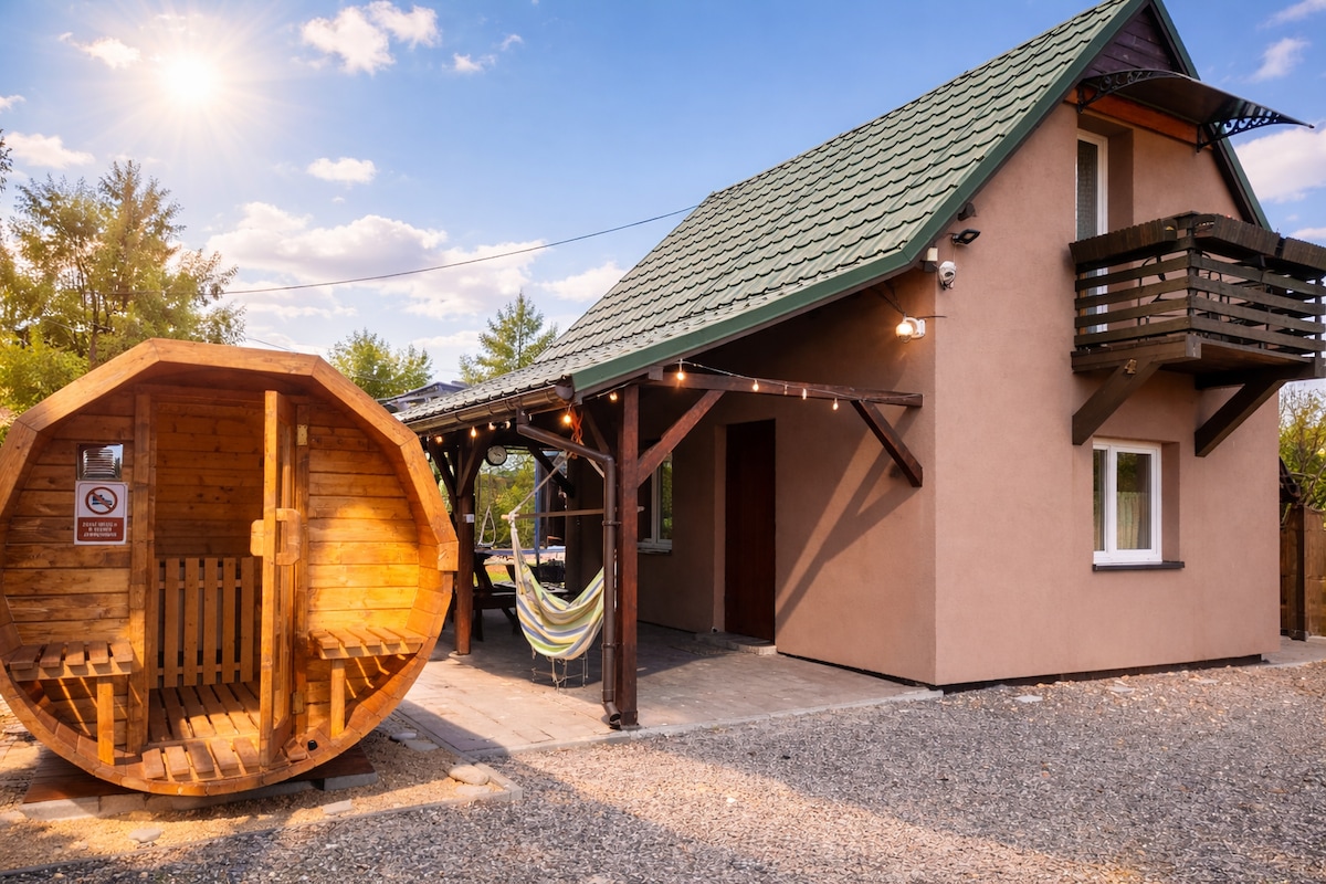 Miejsce idealne na pobyt z rodziną. Przestronny, dobrze wyposażony dom z dużym tarasem i ogrodem. Spokojna okolica. Niedaleko rozliczne atrakcje- Enerylandia i Dinozatorland (10 km), Inwałd Park (park miniatur, lunapark, dinopark, etc). 10 km do Wadowic, 45 km do Krakowa. W ogrodzie mini plac zabaw dla dzieci (huśtawki, ścianka wspinaczkowa, domek, piaskownica). Blisko lasu i natury. W domu znajdują się też rowery i zabawki, które udostępniamy gościom. Na tarasie jest możliwość grillowania.